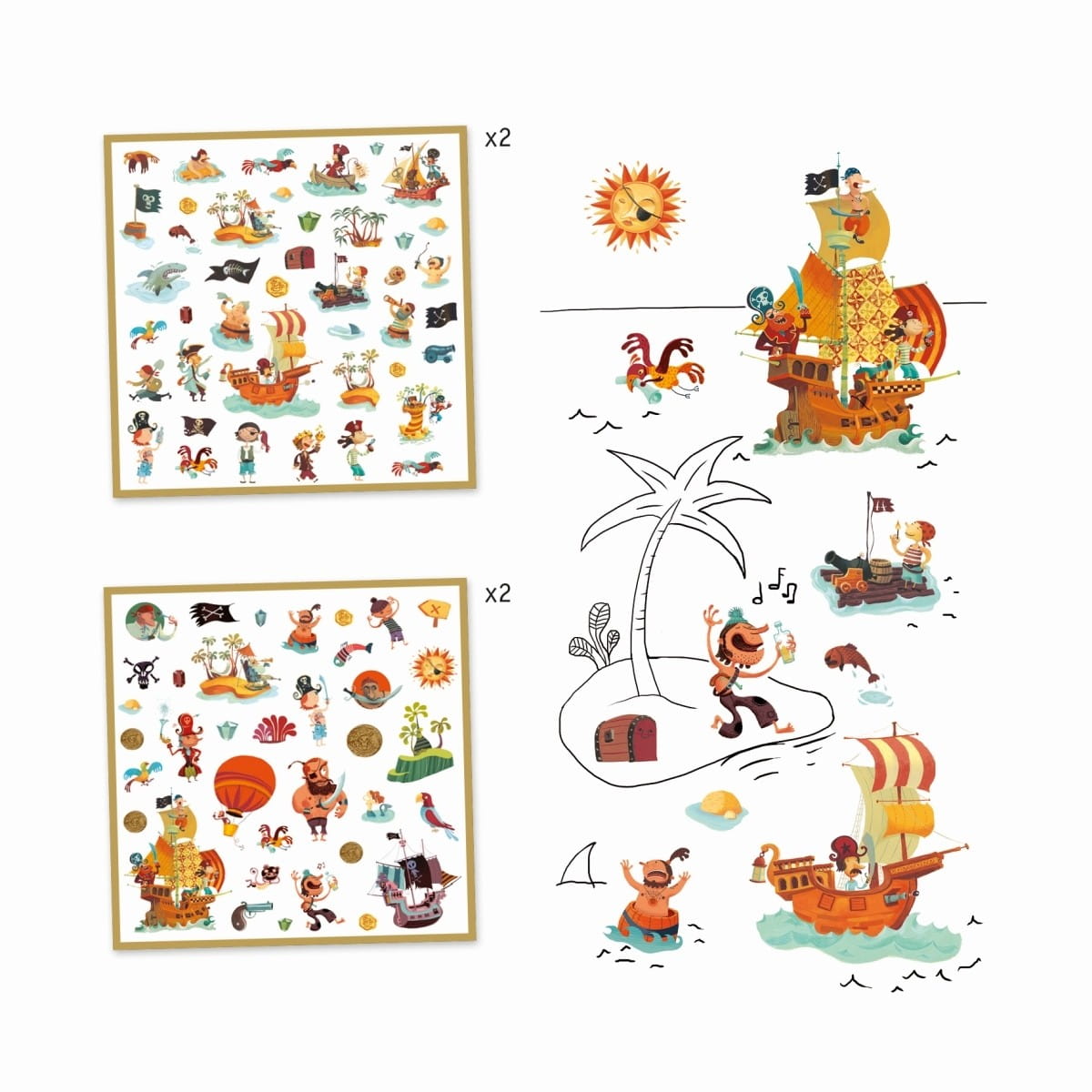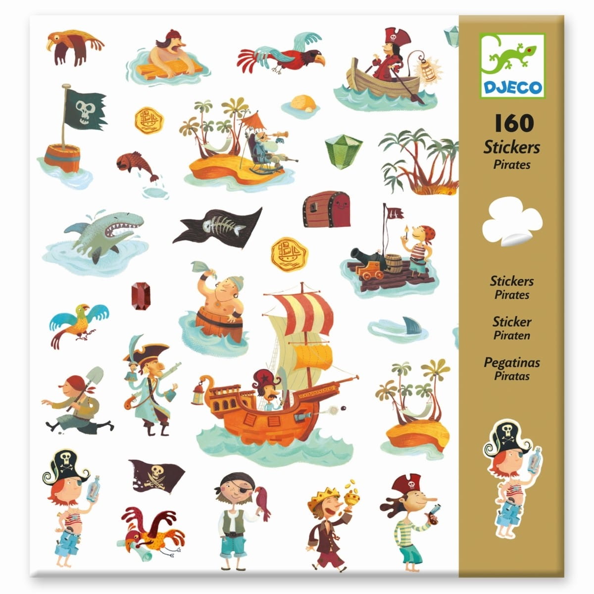 Zestaw naklejek Djeco to kartonowa teczka, a w niej aż 160 naklejek w bardzo ładnej grafice. Wszystko co związane z piratami: statki, skarby, rekin, a nawet papuga. Naklejki z piratami ozdobią obrazki, kolorowanki, zaproszenia, czy kartki okolicznościowe wykonane przez dzieci.