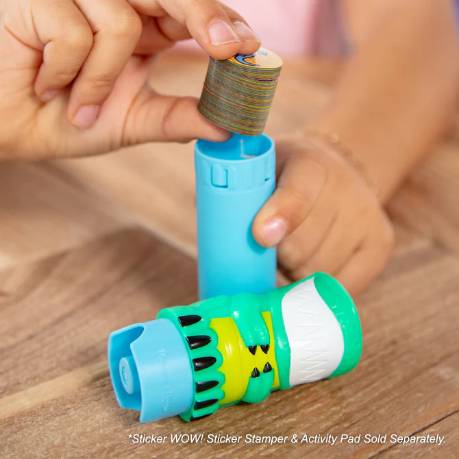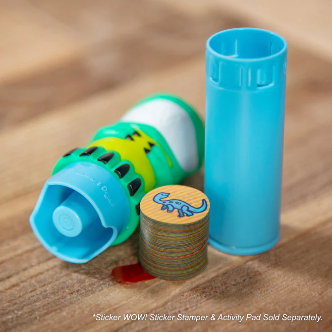300 Naklejek z dinozaurami do uzupełnienia stempelka Sticker WOW Melissa and Doug. Komplet naklejek dla wszystkich małych miłośników prehistorycznych stworzeń. Przeznaczony dla dzieci w wieku od 3 lat, zestaw umożliwia tworzenie własnych, niepowtarzalnych scen z dinozaurami.