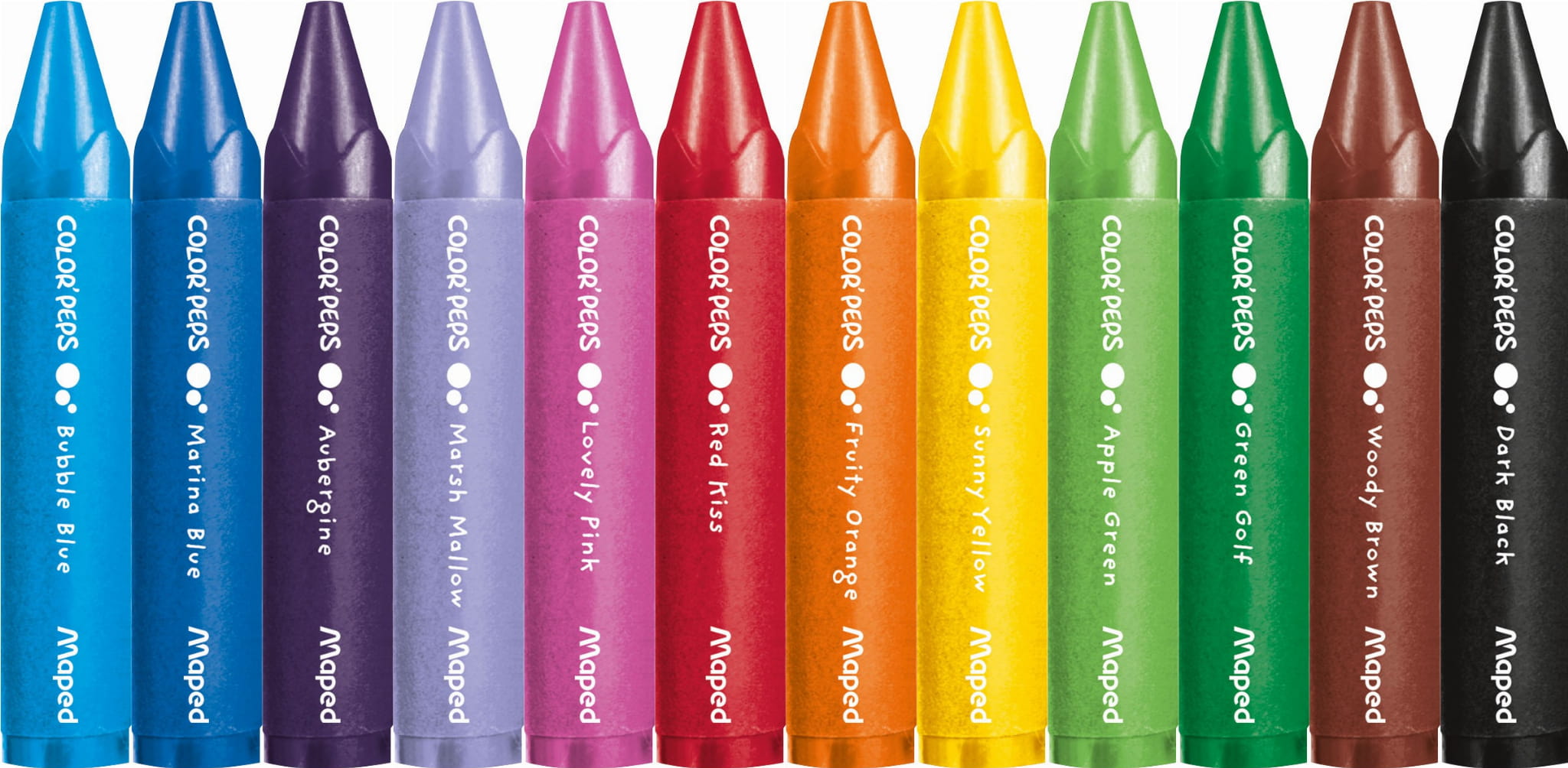 - 12x kredek woskowych w ergonomicznym, trójkątnym kształcie idealnie nadaje się do nauki prawidłowego trzymania kredek. Papierowa owijka wokół kredek świecowych zapobiega zabrudzeniu rączek małych dzieci.