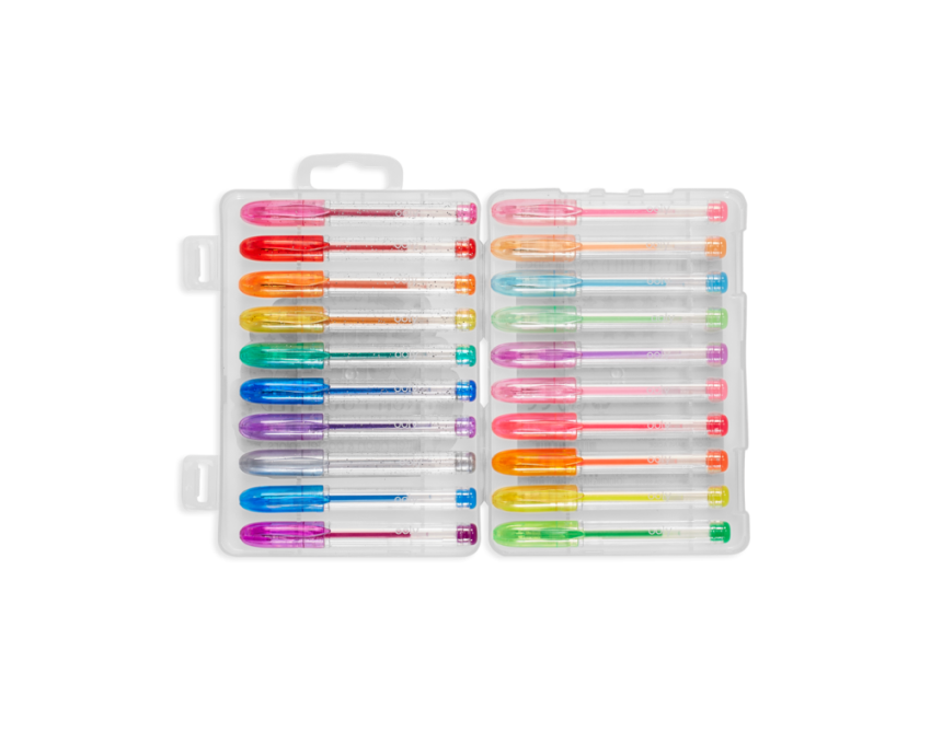 Pachnące długopisy żelowe Ooly to zestaw, który zawiera 10 brokatowych, 5 neonowych i 5 pastelowych długopisów pięknie piszących. Długopisy są zapakowane w sztywne, prześwitujące pudełko, które tanowi trwały piórnik.