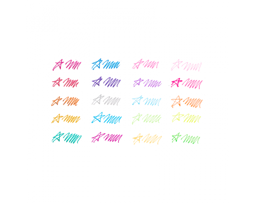Każdy z 20 długopisów daje piękny kolor i zapach, mi.in. ananasowy, truskawkowy, bananowy, czy jabłkowy.