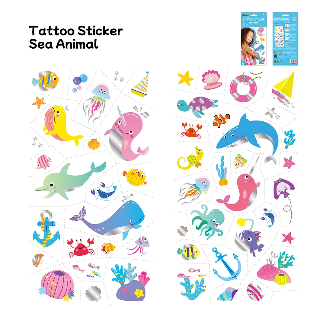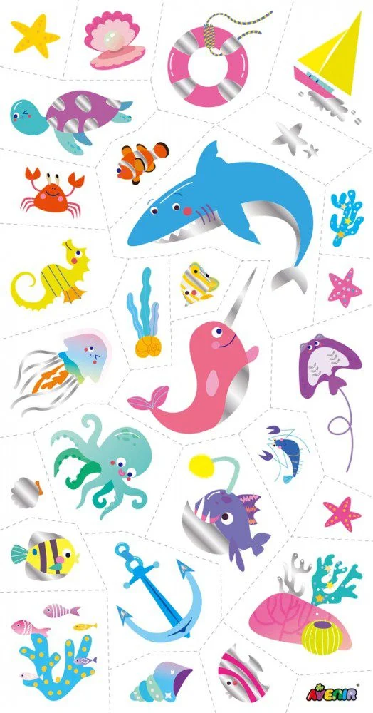 Błyszczące Tatuaże dla dzieci Wodne zwierzęta 52 szt. - Avenir