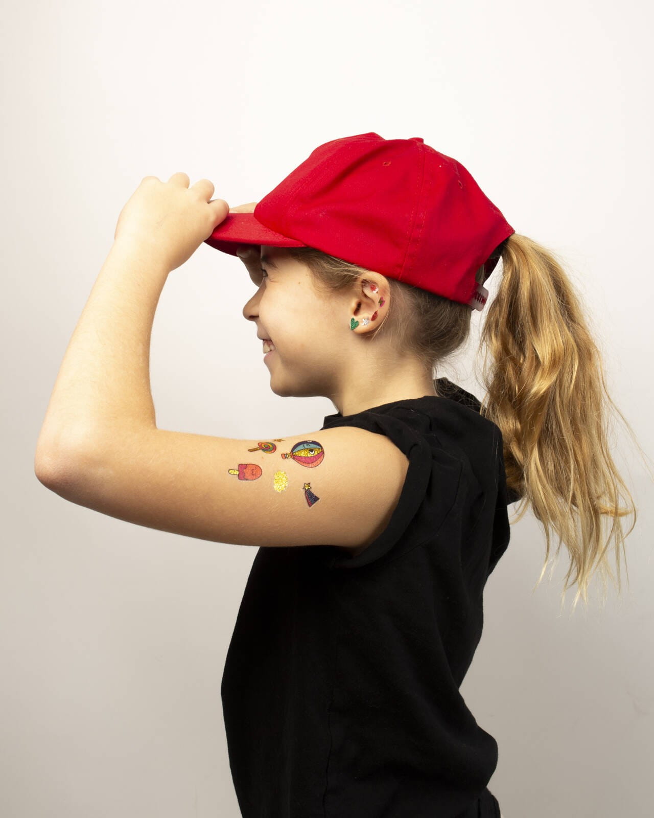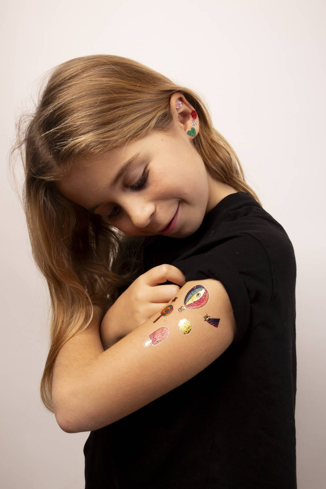 Dziecięce tatuaże omy są bezpieczne dla skóry, mają kolorowe wzory w dinozaury. Tymczasowe tatuaże naklejki udekorują dziecięce dłonie, raczki, czy nogi. Tatuaż z łatwością można nanieść w dowolnym miejscu ciała, tworząc prześliczne dekoracje ze zwierzakami. Tatuaże z dinozaurami są tymczasowe, całkowicie schodzą ze skóry, nie powodując podrażnień. Tatuaże są łatwe w użyciu, trwałe i przetestowane dermatologicznie.