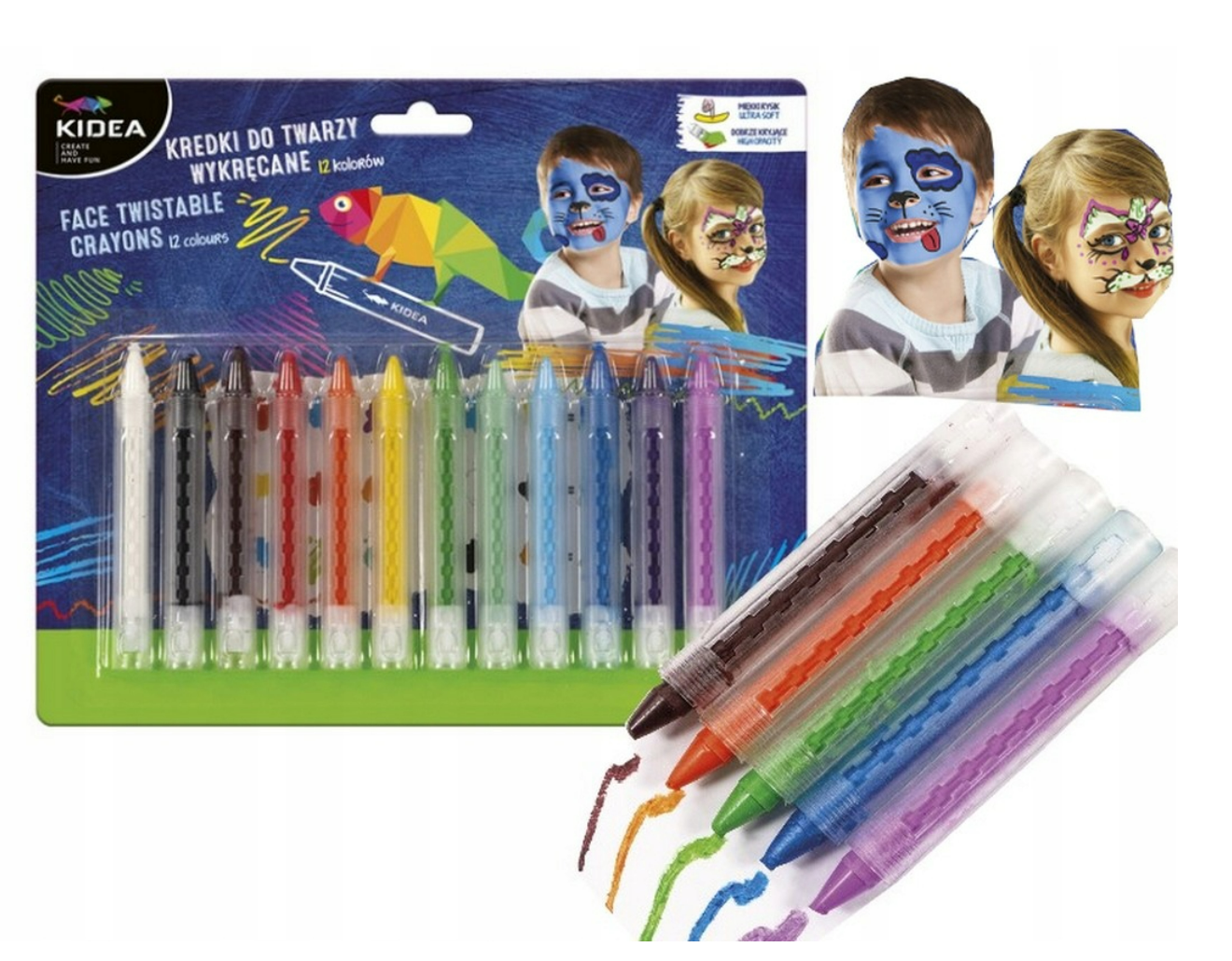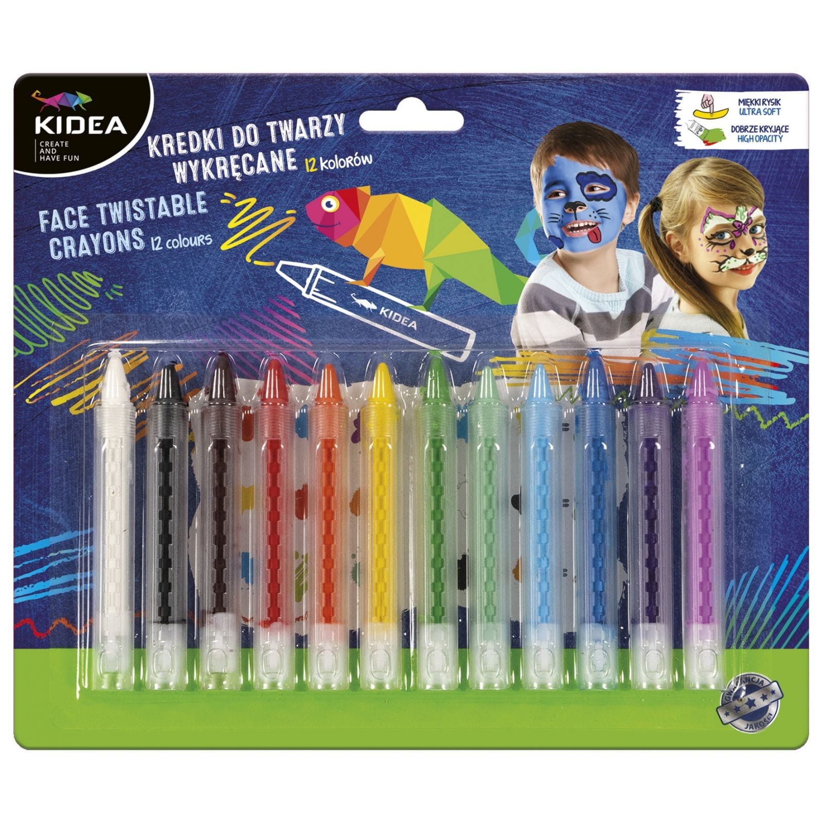 Kredki do Malowania Twarzy Wykręcane 12 kolorów - Kidea