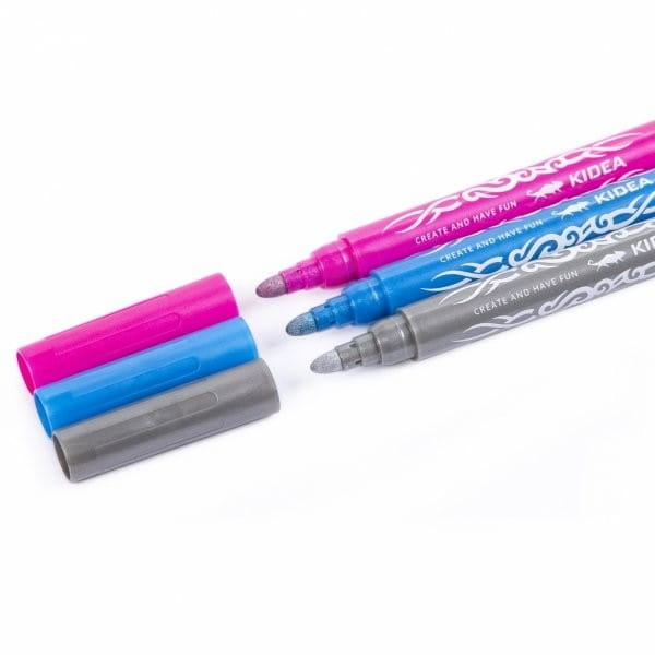 - Metaliczne markery w kolorach: różowym, niebieskim oraz szarym.