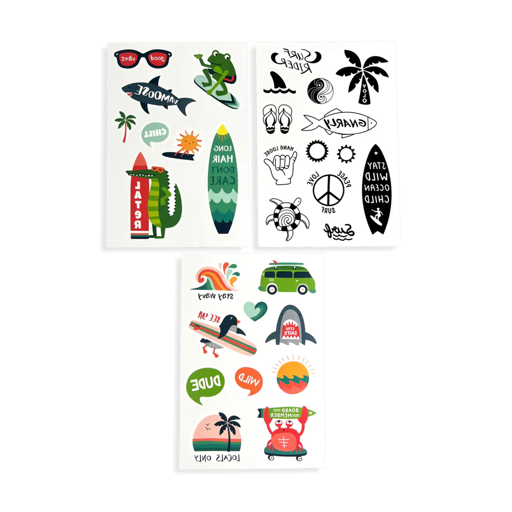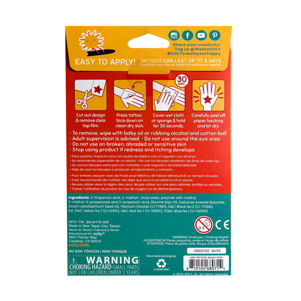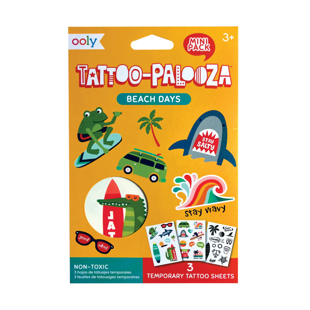 - Zabawne tatuaże dla dzieci Mini Tattoo Palooza Temporary Tattoos - Beach Days to zestaw tymczasowych tatuaży, idealny na letnie dni i plażowe zabawy. Z kolorowymi, wakacyjnymi motywami, te tatuaże dodadzą radości każdej wodnej przygodzie.