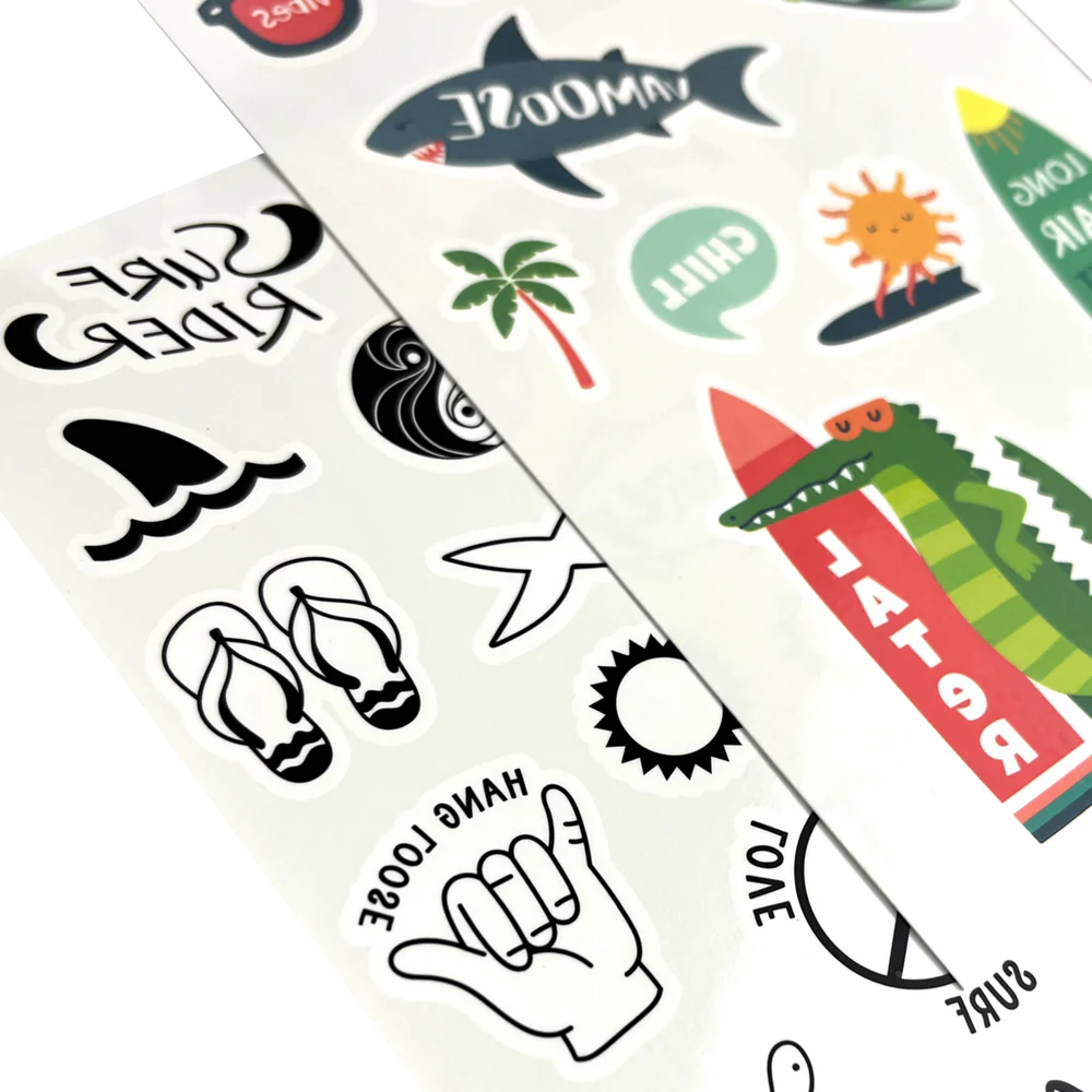- Zestaw zawiera ok 30 zmywalnych tatuaży z różnorodnymi motywami plażowymi, takimi jak słońce, windsurfing, palmy, fale i inne elementy kojarzące się z letnim odpoczynkiem nad wodą.