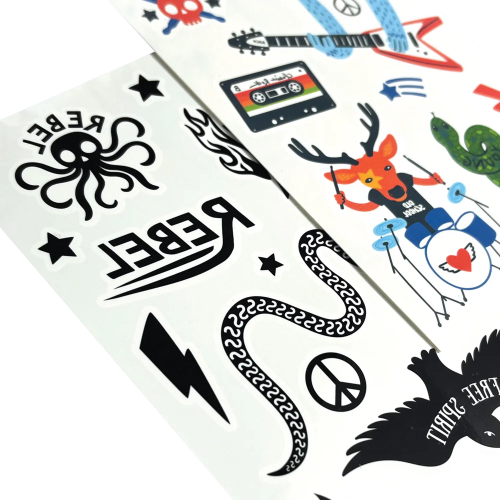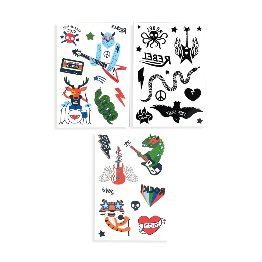 Zestaw tymczasowych tatuaży, który przeniesie małych miłośników muzyki w świat rocka. Te energetyczne i pełne charakteru tatuaże są idealne dla dzieci, które chcą wyrazić swoją miłość do muzyki rockowej za pomocą wesołych i kolorowych wzorów.