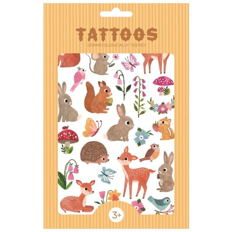 Tatuaże dla dzieci holenderskiej marki Petit Monkey są bezpieczne dla skóry, mają ładne i przyjazne dzieciom wzory. Tatuaże są tymczasowe, całkowicie schodzą ze skóry, nie powodując podrażnień. Naklejki na skórę z leśnymi zwierzątkami to 2 arkusze tatuaży.