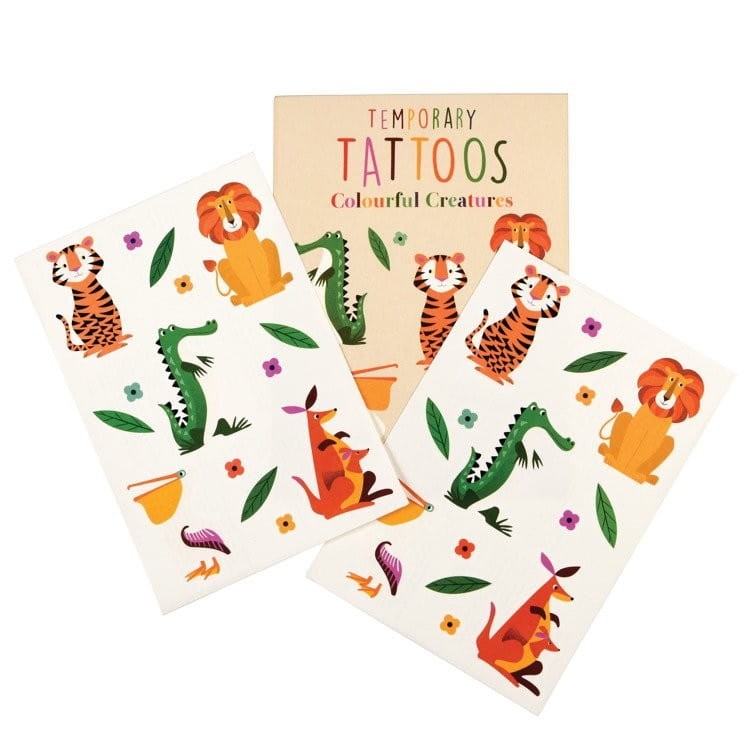 Tatuaże Rex London dla dzieci są bezpieczne dla skóry, mają ładne i przyjazne dzieciom wzory. Tatuaże są tymczasowe, całkowicie schodzą ze skóry, nie powodując podrażnień. Naklejki na skórę ze zwierzątkami to 2 arkusze tatuaży.