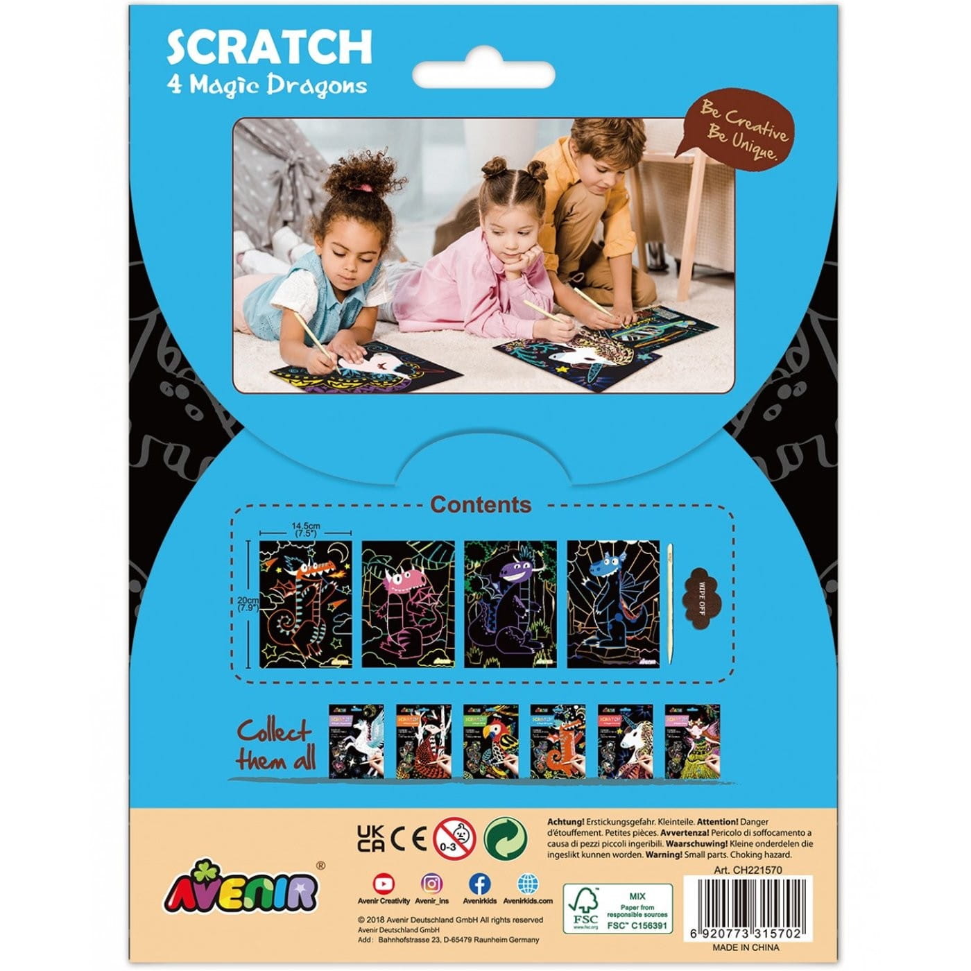 Kolorowe Wydrapywanki Smoki 4 szt. Scratch Art - Avenir