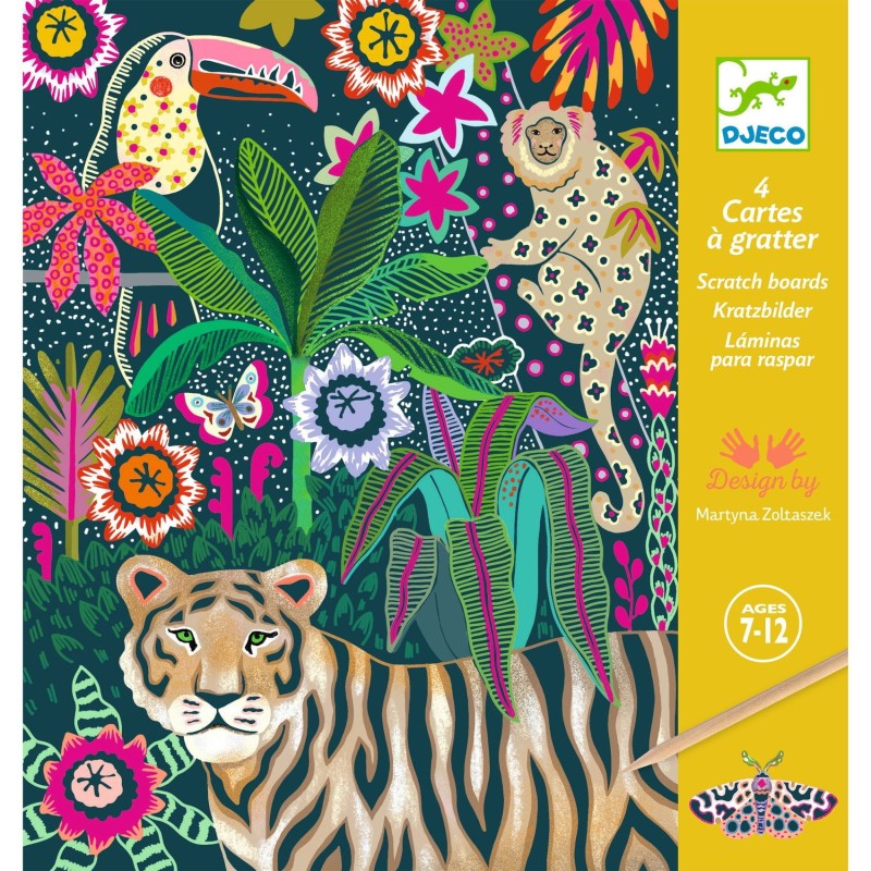 Wydrapywanki Egzotyczne Zwierzęta kolorowe 4 szt.- Djeco