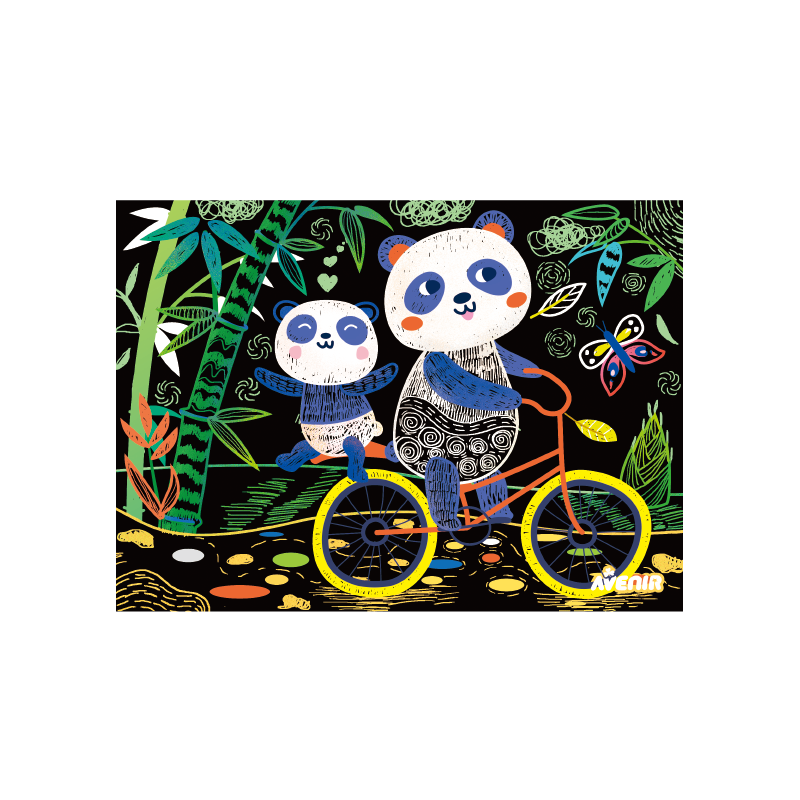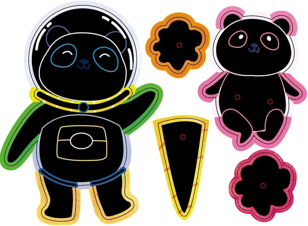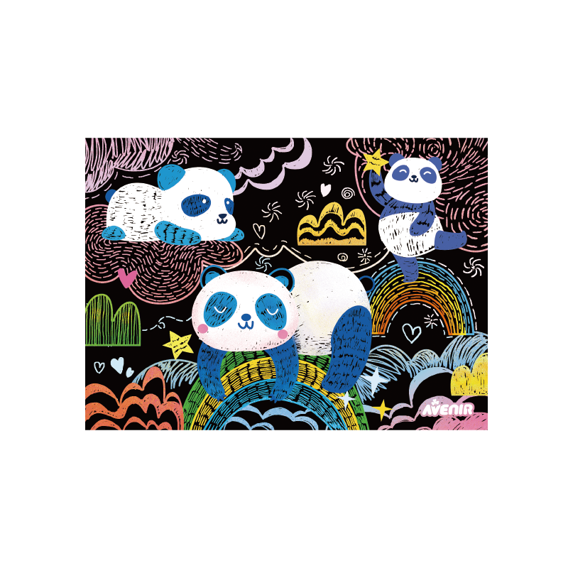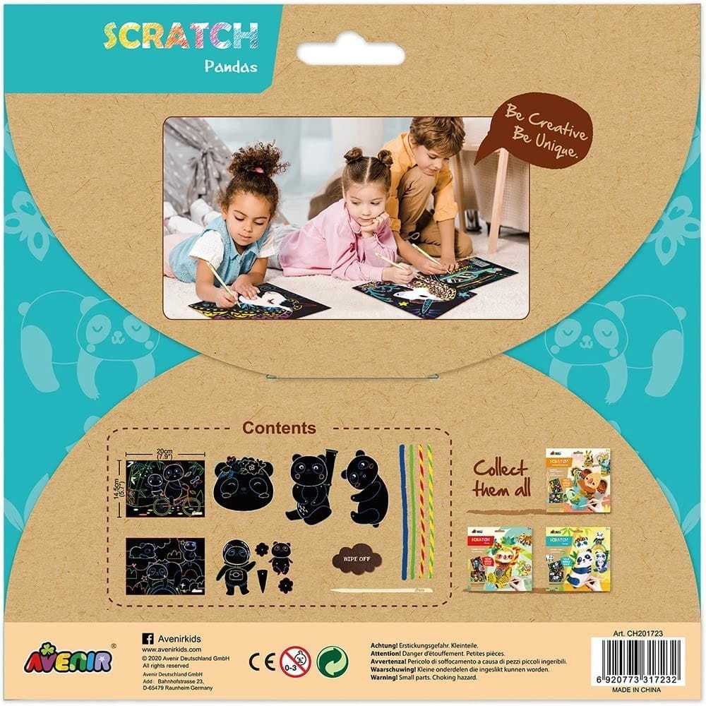 Zdrapywanki Panda AvenirKids to kreatywny zestawem do wydrapywania oraz dekorowania obrazków. Zadanie polega na zdrapaniu załączonym rysikiem zaznaczonych miejsc na kartach. Jest to rodzaj kolorowania przez zdrapywane. Pod spodem umieszczone jest tęczowe tło, powstałe obrazki są kolorowe. Można je potem udekorować załączonymi elementami. Wciągająca kreatywna zabawa.