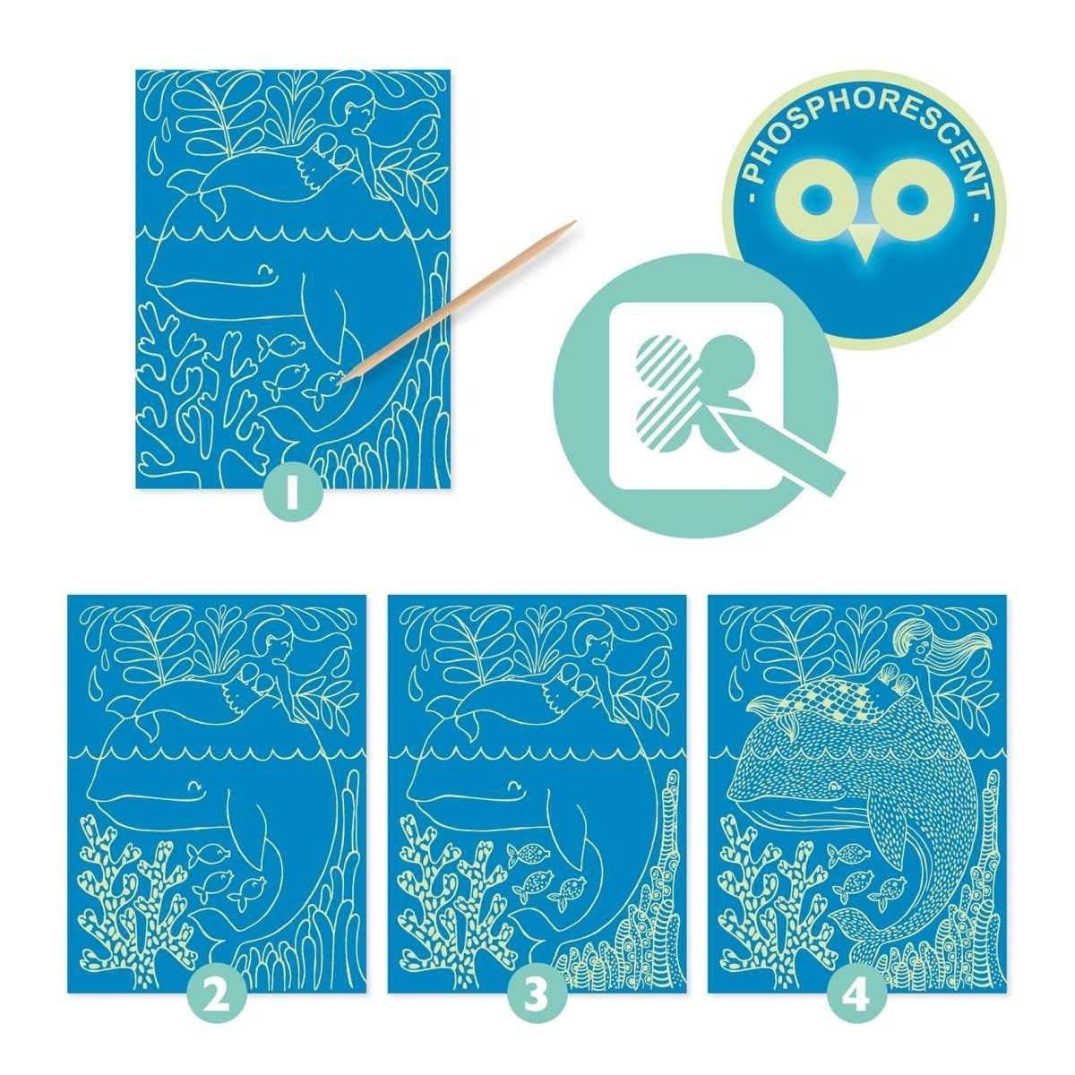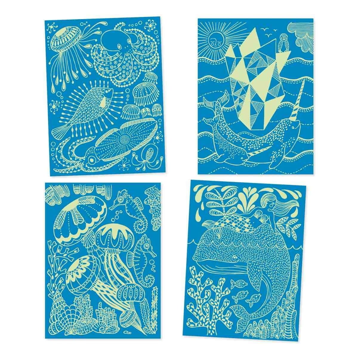 Wydrapywanki Świecące w Ciemności Życie Morskie 4 szt.- Djeco
