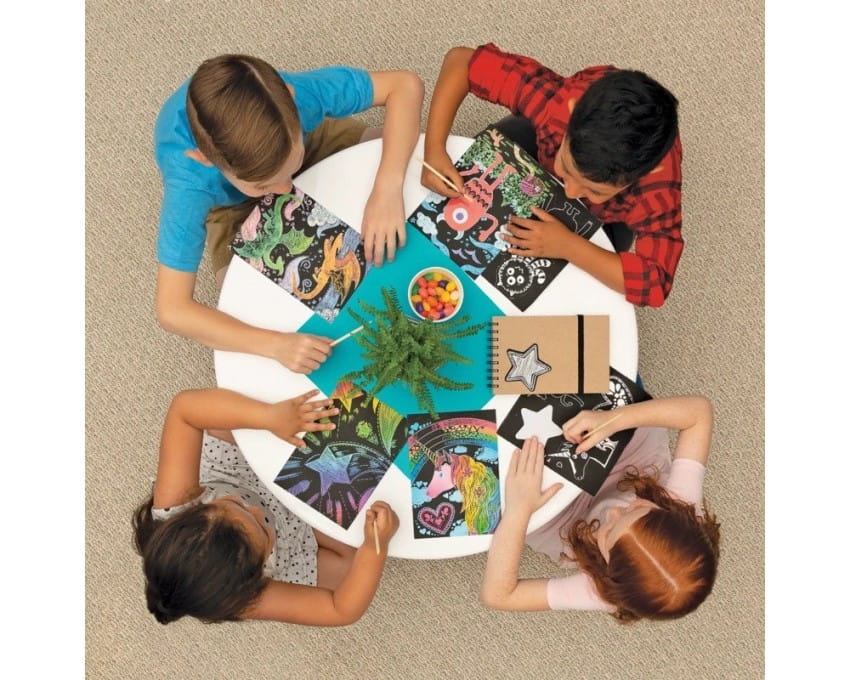 Uwielbiona przez dzieci zdrapywanka Ooly z jednorożcami. Kreatywny zestaw zawiera czarne kartki pokryte specjalną warstwą z narysowanymi konturami lub gładkie oraz rysik do drapania. Zdrapki kryją pod spodem różne tła. Wystarczyć zdrapać wierzchnią warstwę drewnianym patyczkiem i stworzyć piękne ilustracje.