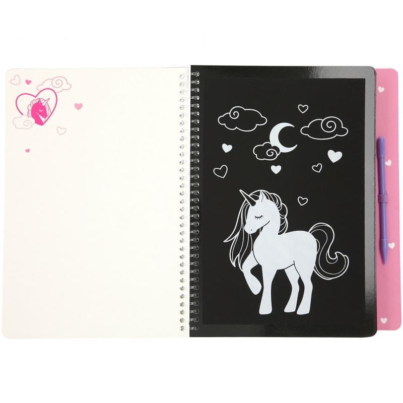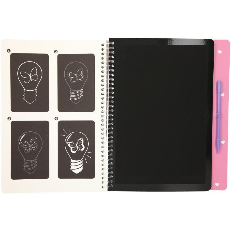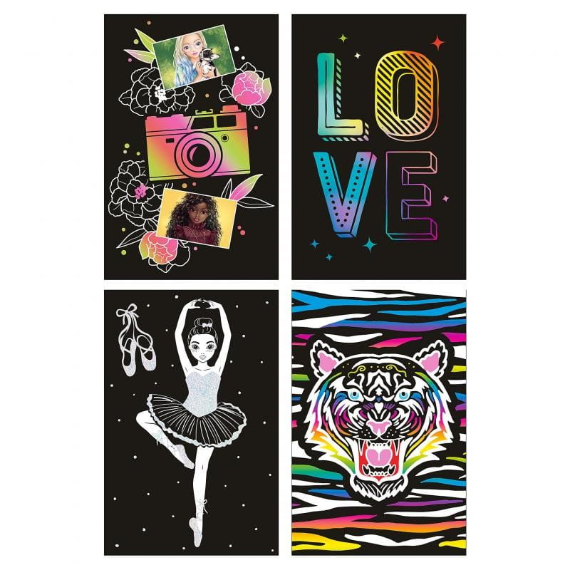 Uwielbiona przez dzieci zdrapywanka pełna modnych wzorów do odkrycia. Kreatywny zestaw zawiera czarne kartki pokryte specjalną warstwą wosku z narysowanymi konturami oraz rysik do drapania.