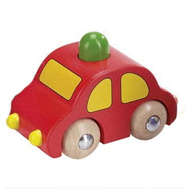 Czerwony samochodzik Goki jest wykonany z drewna, na górze ma przycisk, który po wduszeniu wydaje delikatny dźwięk. Drewniane autko w kolorze czerwonym jest idealną pierwszą zabawką maluszka, dzięki której dziecko ćwiczy chwytanie, przemieszczanie się po podłodze, naśladowanie odgłosów.