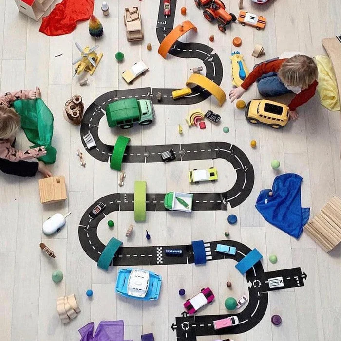Układanka drogowa sprzyja kreatywnej zabawie, a co najważniejsze, łączy się ze wszystkimi zabawkami jakie mamy w domu, samochodzikami, klockami, ludzikami pozwalając zbudować miasteczko marzeń.