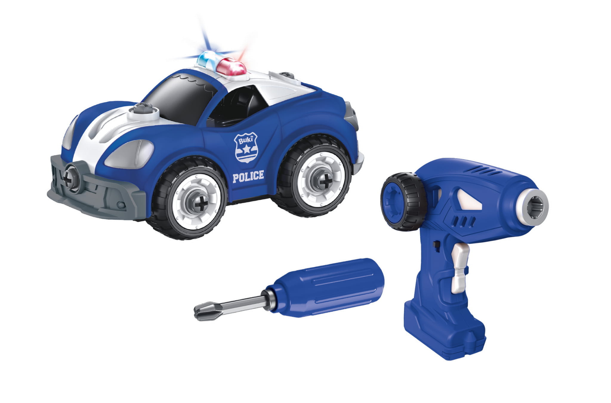 Zmontuj swój policyjny wóz za pomocą wkrętarki, postępując zgodnie z instrukcjami krok po kroku.
