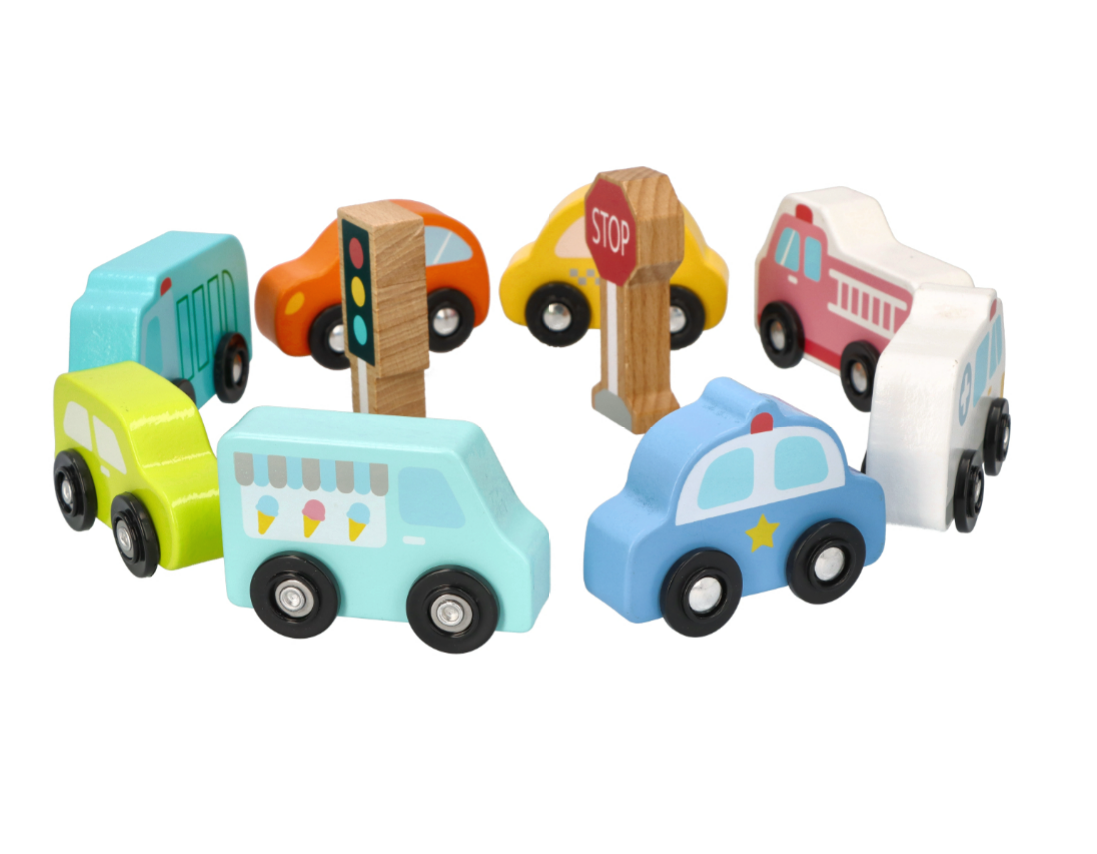 Najważniejsze pojazdy drogowe spodobają się dzieciom, które mogą nimi lekko sunąc po podłodze. Wyka jakość wykonania, żywe i wesołe kolory oraz odpowiednia wielkość samochodzików - idealna dla dziecięcej rączki sprawią, że zestaw autek zainteresuje i zachęci do zabawy każdego malucha. W komplecie znajduje się 8 pojazdów m.in. karetka, samochód policyjny czy samochód z lodami oraz 2 znaki drogowe ( STOP i sygnalizacja świetlna ).