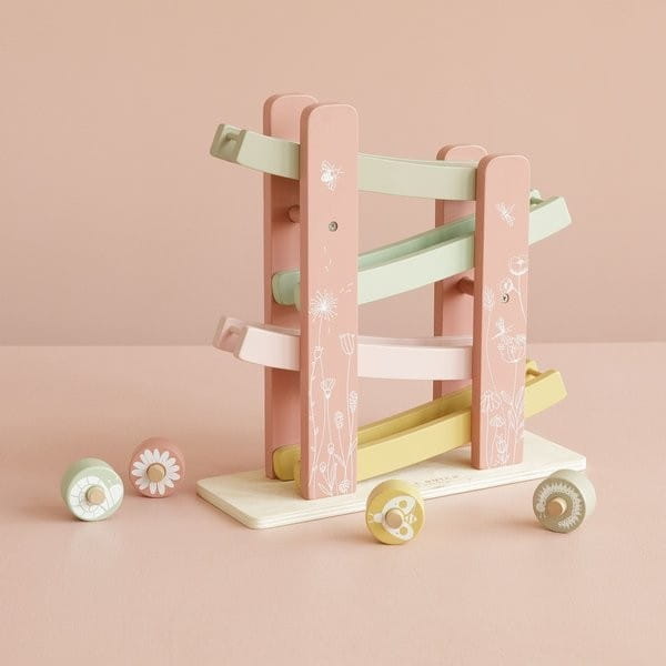 Drewniana zjeżdżalnia Little Dutch to wspaniała zabawka dziecięca, pobudzająca różne zmysły i zdolności. Cztery kolorowe krążki suną po zjeździe mając do pokonania cztery piętra. Puszczanie drewnianych elementów w dół oraz obserwowanie ich prędkości oraz rotacji to bardzo absorbujące zajęcie dla małych dzieci.