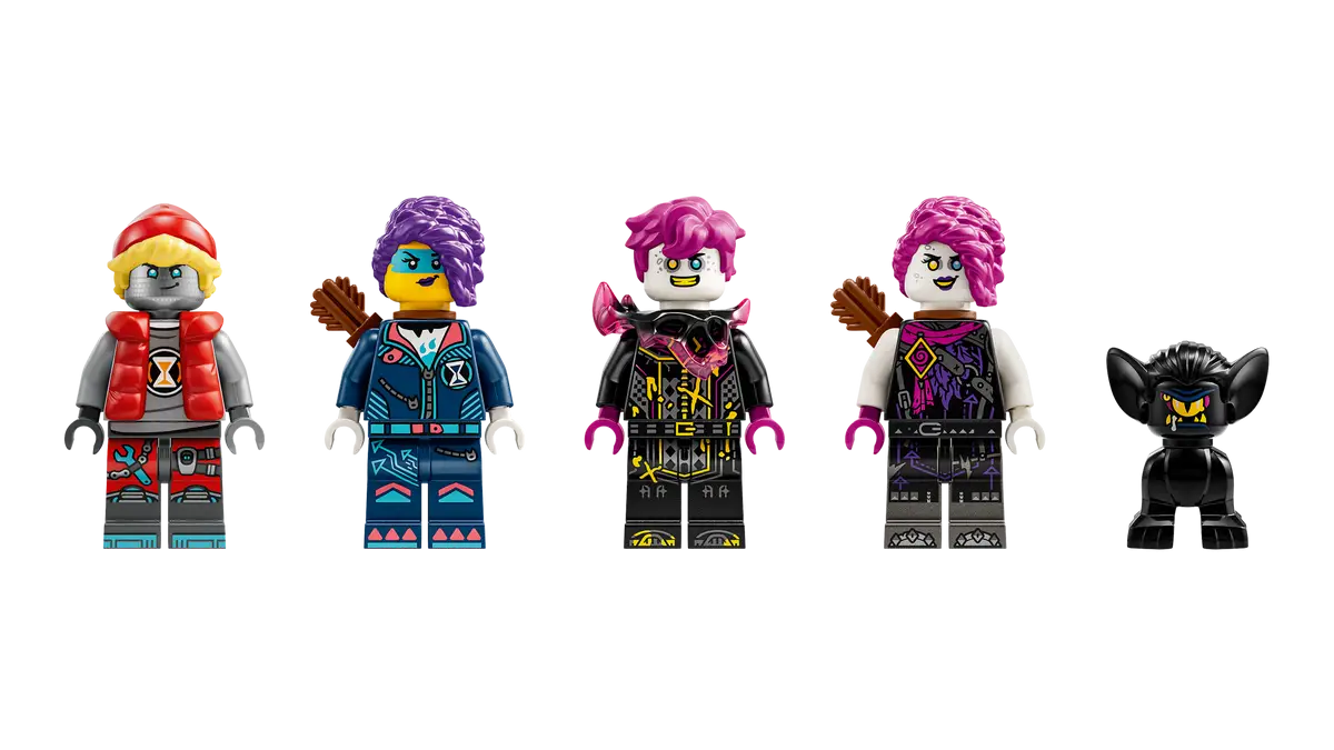 - Cztery minifigurki — zestaw urozmaicają minifigurki Zoey, Coopera oraz ich mrocznych sobowtórów, Doey i Doopera, a także figurka Sneaka