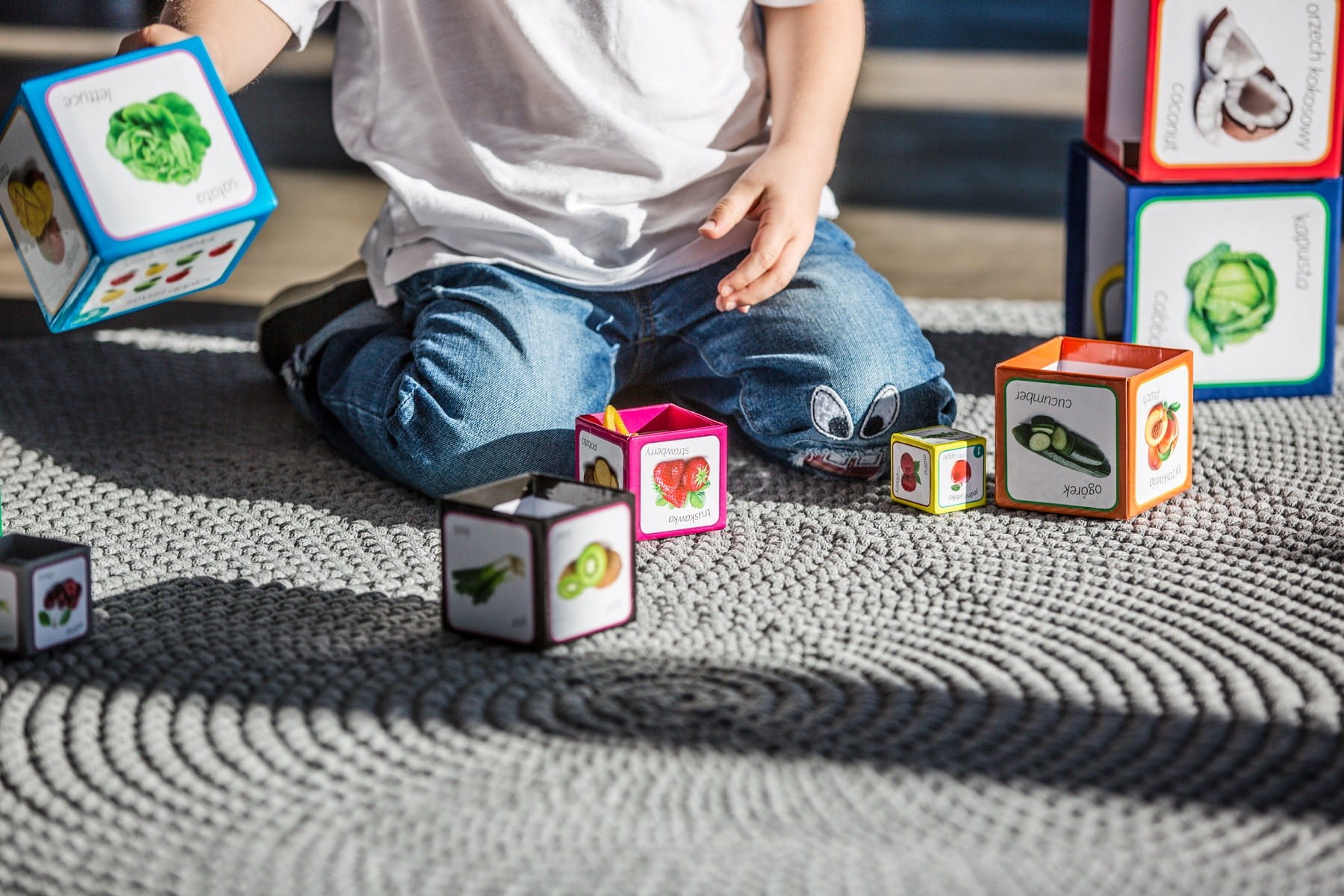 - Zestaw składa się z 10-ciu solidnych, tekturowych pudełek z realnymi zdjęciami owoców i warzyw.
