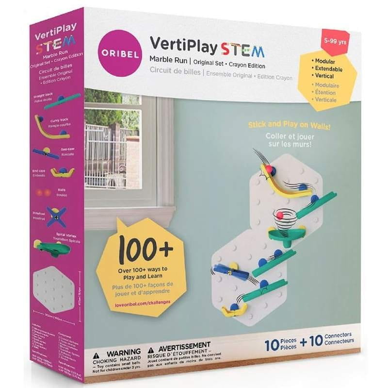 Piętrowy tor dla kulek to atrakcja podczas budowania i puszczania kulek po kładkach. Zawarte w zestawie elementy konstrukcyjne o różnej długości i kształcie umożliwiają zbudowanie wielowariantowego toru zjazdu dla kulek. Lekka zmiana nachylenia lub ułożenia elementy daje zupełnie nową trasę! Innowacyjna zabawka Oribel może być wielokrotnie przyklejana na ścianę lub drzwi oraz zmieniać swoje miejsce położenia, w zależności od potrzeb dziecka i rodziców.