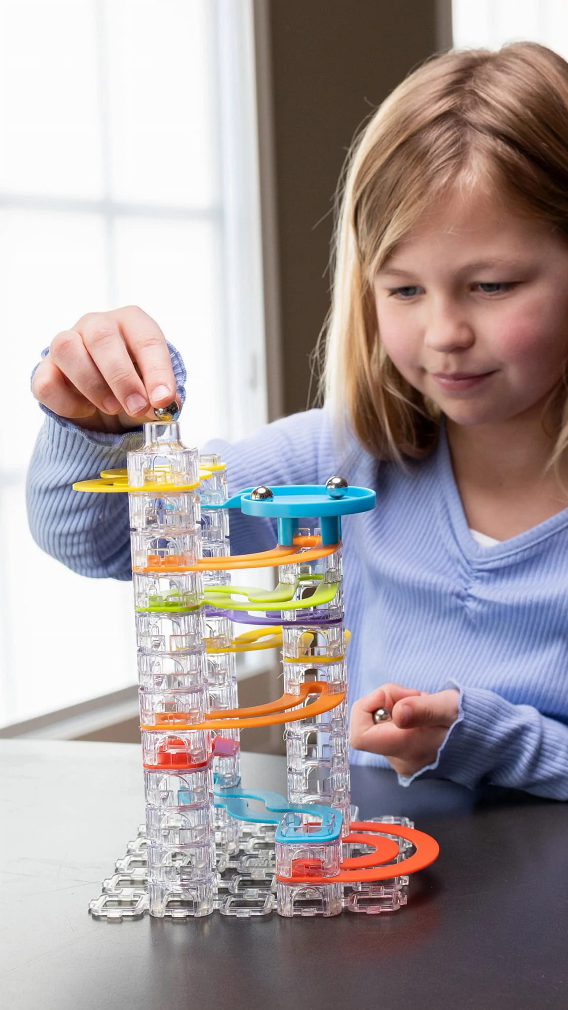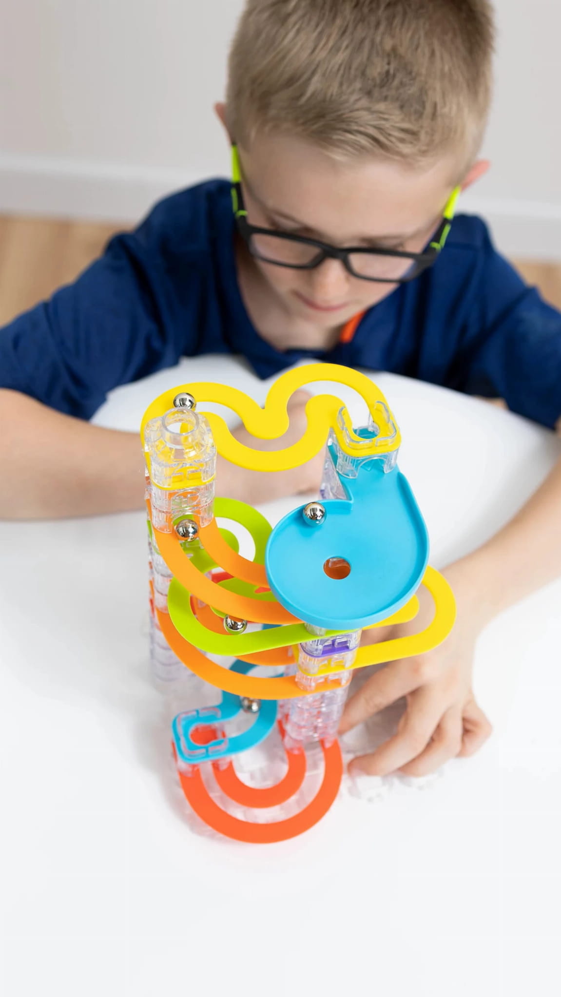 Wyjątkowy labirynt dla kulek napędzanych przez poszerzające się tory, jest innowacyjną zabawką, która rozwija umiejętności myślenia przestrzennego, kreatywność, umiejętności inżynierskie oraz rozwiązywania problemów.