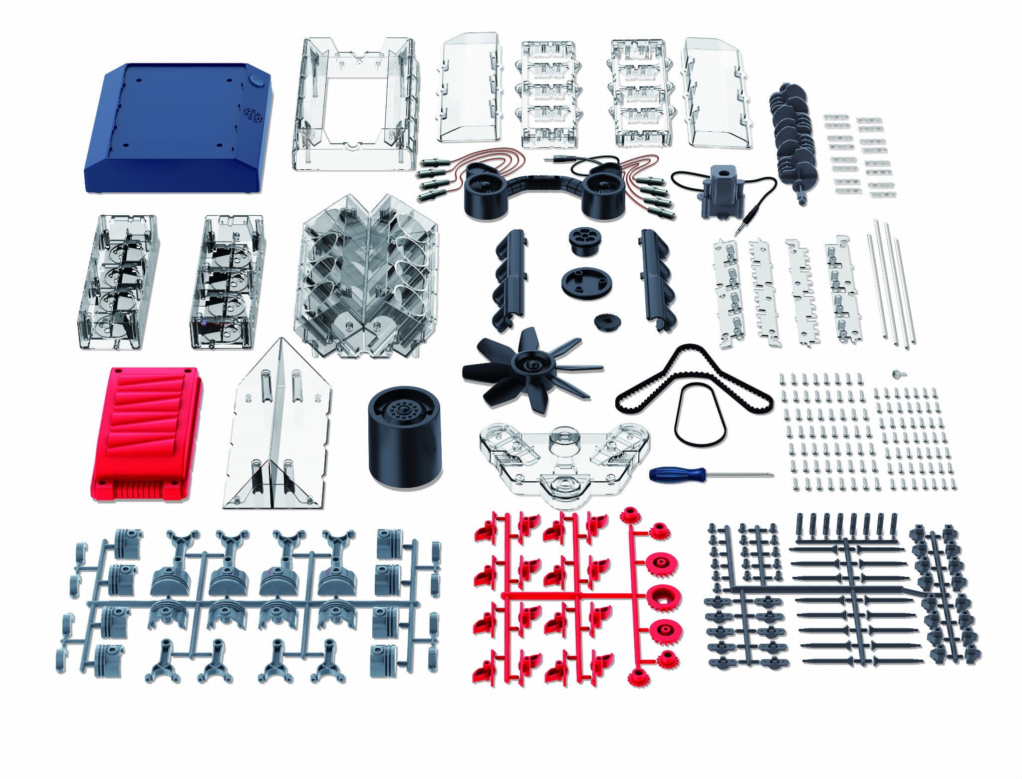 Złóż części i zbuduj replikę silnika spalinowego V8.