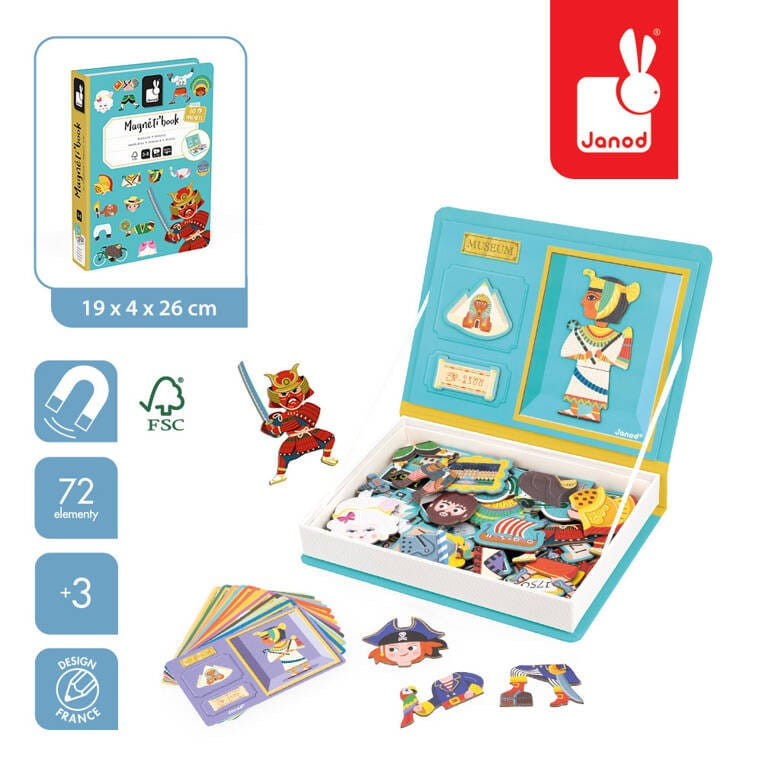 Bestsellerowa układanka magnetyczna Janod to inteligentna zabawa, rozwijająca wyobraźnie, kreatywność, sprawność manualną. Solidne i kolorowe pudełko otwiera się jak książka, można je łatwo transportować, zabrać w podróż, szybko posprzątać, idealnie nadaje się na prezent.