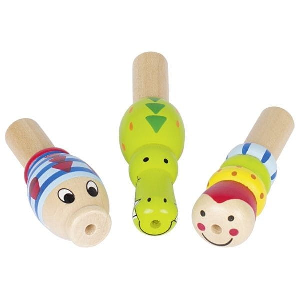Kieszonkowy, drewniany gwizdek Goki w kształcie zwierzaka. Do wyboru 3 zabawne motywy. Prosta zabawka z naturalnego materiału może okazać się dobrą pomocą logopedyczną. Dmuchanie w gwizdek ćwiczy długość wydechu.