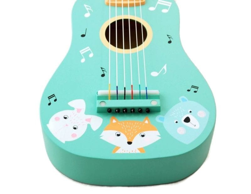 Drewniana gitara dla małych artystów muzyków do grania i śpiewania oraz zabawy i odkrywania rytmów. Wielkość i kształt idealnie pasują do dziecięcych rączek. Dziecięca gitara ma drewniane pudło i 5 nylonowych strun, które można naciągać. Ten instrument muzyczny wprowadza w świat dźwięków, rytmów, może przyczyni się do odkrycia wielkiego talentu? Gitara dziecięca stanowi subtelną dekorację dziecięcego pokoiku.