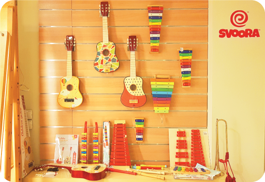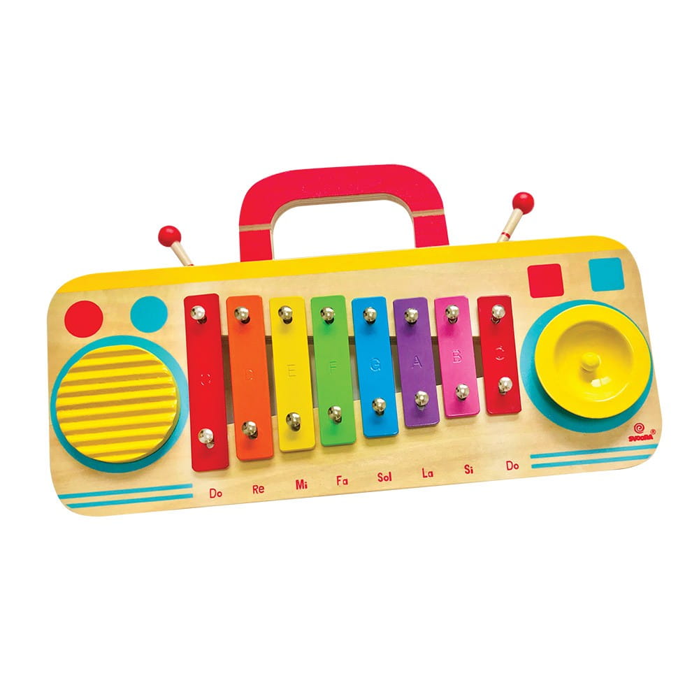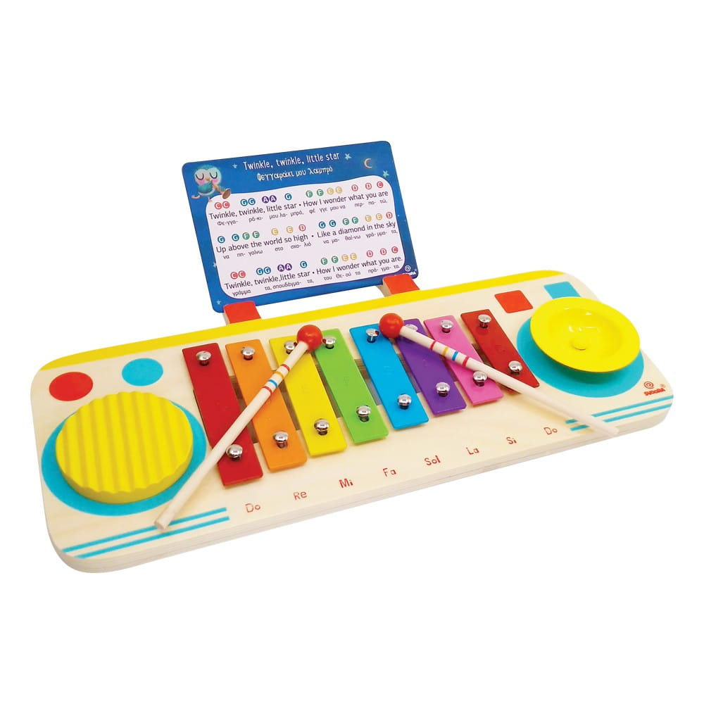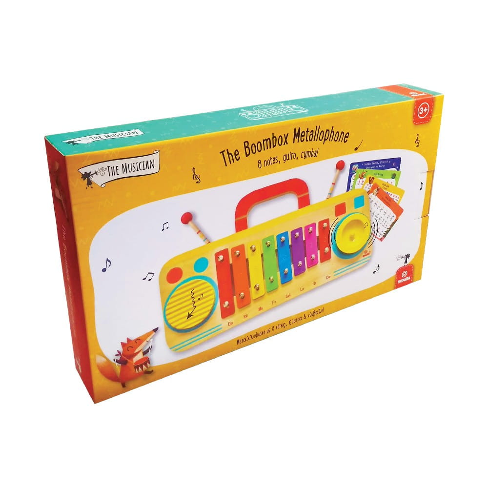 Gotowy, aby przenieść swoje muzyczne inspiracje na wyższy poziom? Cymbałki 8-mio tonowe Svoora stylizowane na magnetofon. Kolorowe dzwonki w drewnianej obudowie mają po bokach dodatkowe instrumenty: drewniane rowki guiro, talerz. W zestawie otrzymujemy 2 pałeczki, które można przechowywać z tyłu instrumentu, oraz karty z nutami 4 kultowych angielskich utworów: "Jingle Bells", "Happy Birthsday", "Twinkle, twinkle, littlke star", "Little John". Cymbałki posiadają wygodny uchwyt do przenoszenia. Mnóstwo możliwości muzykowania, kreatywnej zabawy, radości, beztroskiego grania i śpiewania.