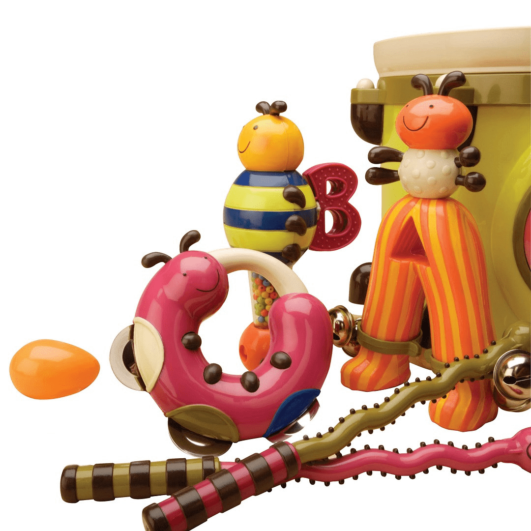 Rewelacyjny bębenek B.toys wypełniony po brzegi sensorycznymi instrumentami pod postacią sympatycznych zwierzątek. W komplecie znajdziemy m.in. pracowitą pszczółkę, urocze stonogi i uwielbiane przez maluchy grzechoczące jajo. Obowiązkowy zestaw dla małego melomana i fana zwierząt.