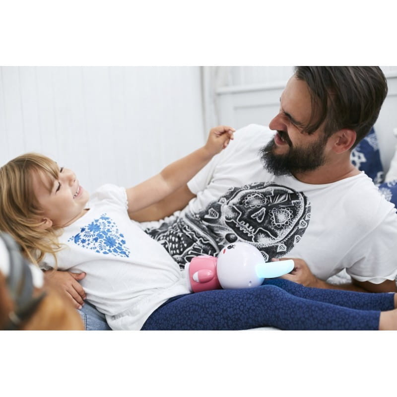 - Funkcja nagrywania Możliwość nagrania piosenki lub bajki wykonanej przez rodzica pozwoli na stworzenie niepowtarzalnego audiobooka lub autorskiej kompilacji utworów dla Twojego dziecka.
