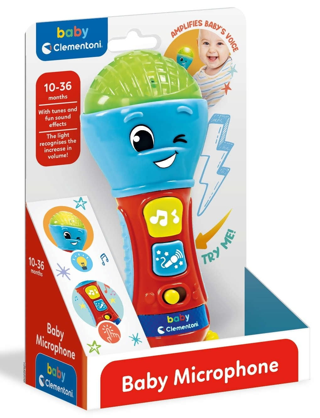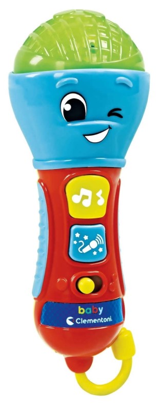 Mikrofon Baby Clementoni posiada wiele melodii oraz efekty dźwiękowe, które zainteresują dzieci. Zabawka muzyczna posiada czujnik głośności; im głośniej dziecko śpiewa lub mówi do mikrofonu, tym jaśniej on świeci.