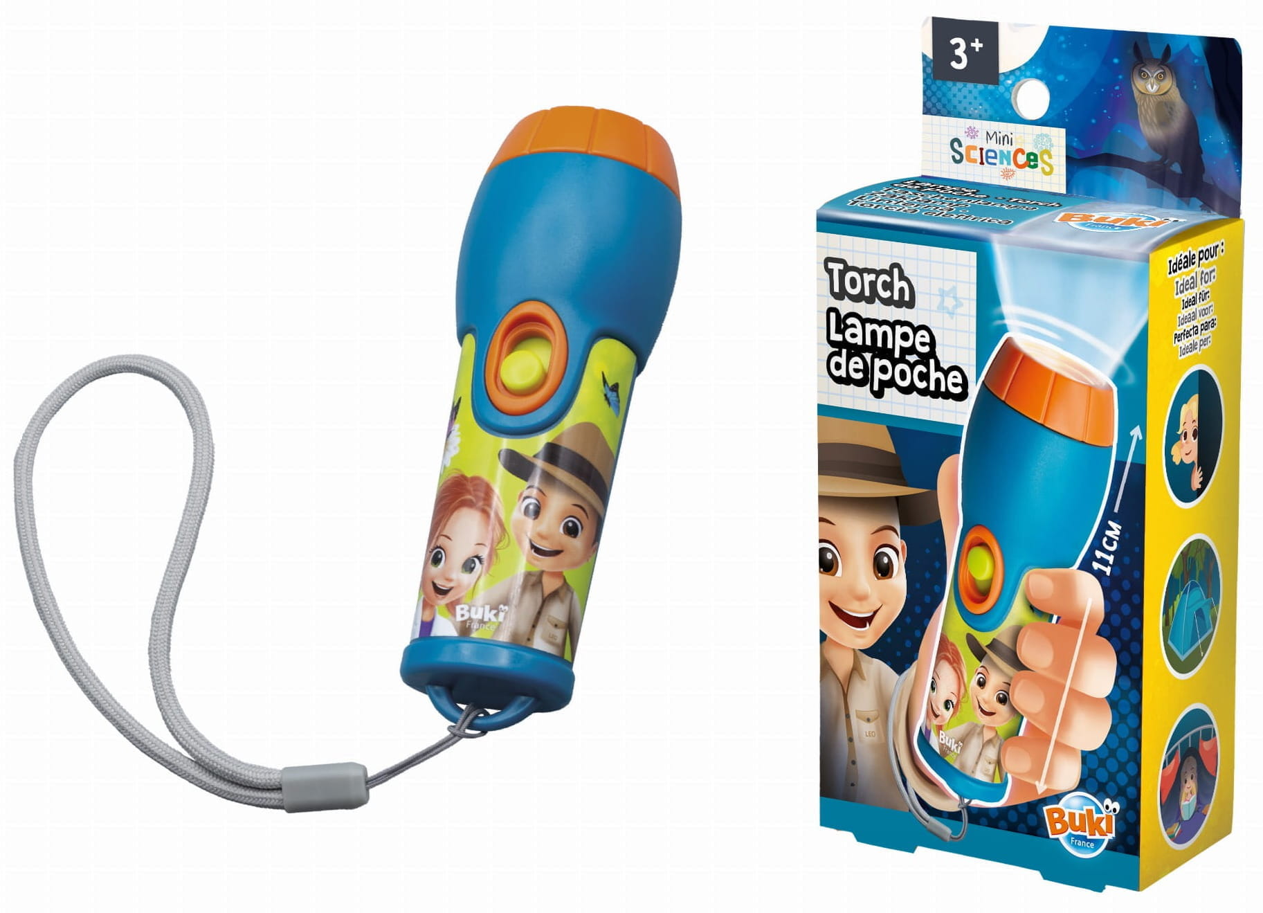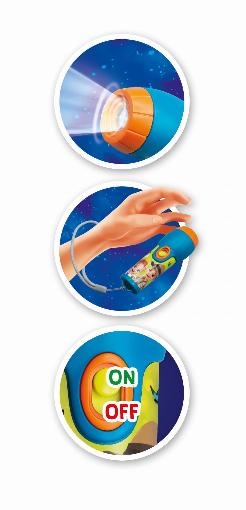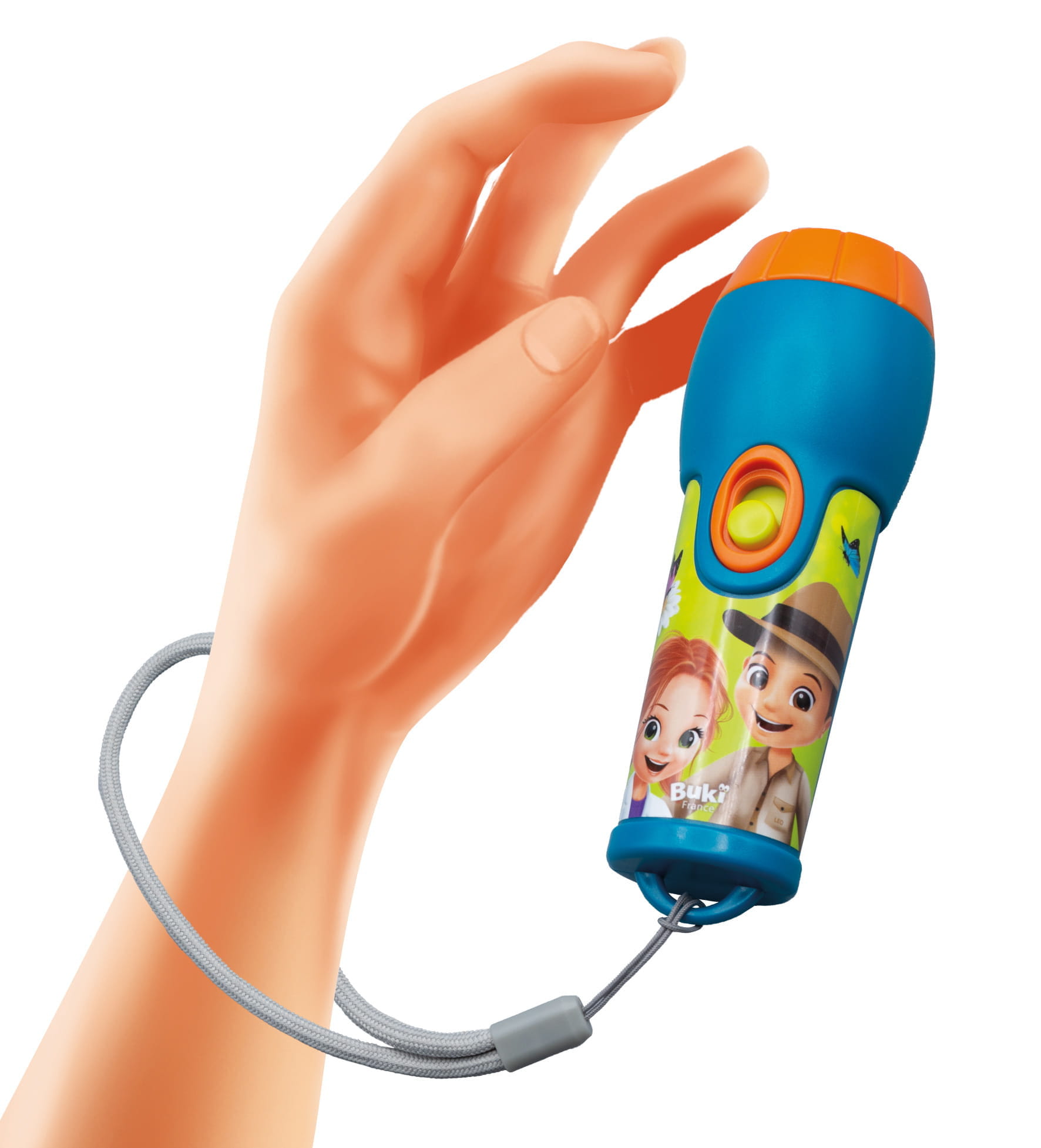 Latarka specjalnie zaprojektowana dla dzieci powyżej 3. roku życia. Zasilana światłem LED, które jest bezpieczne dla oczu dzieci. Latarka posiada przymocowany pasek, który można dopasować do nadgarstka dziecka, aby zapobiec upadkowi.