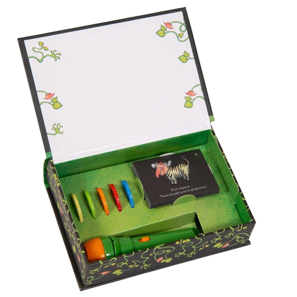 Piękna retro książka zamykana magnetycznie, a w niej kino domowe, czyli mini projektor do wyświetlania historii obrazkowych i aż 5 krążków z ilustrowanymi opowieściami oraz zaproszenia z kopertami na seans. Na zimowe wieczory i nie tylko, na dobranoc i na wakacje, odkryj przygody chłopca o imieniu Piotrek i serię historyjek z kolekcji z L'école des Loisirs.