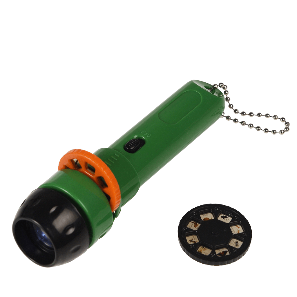 Mały projektor dla dzieci Rex London umożliwia wyświetlanie zdjęć przyrodniczych na ścianie lub suficie. Wystarczy zgasić światło i włączyć jednym guzikiem projektor. W zestawie mamy 2 krążki, razem 16 obrazów związanych z naturą, różnych owadów, które można napotkać na ścieżce przyrodniczej.