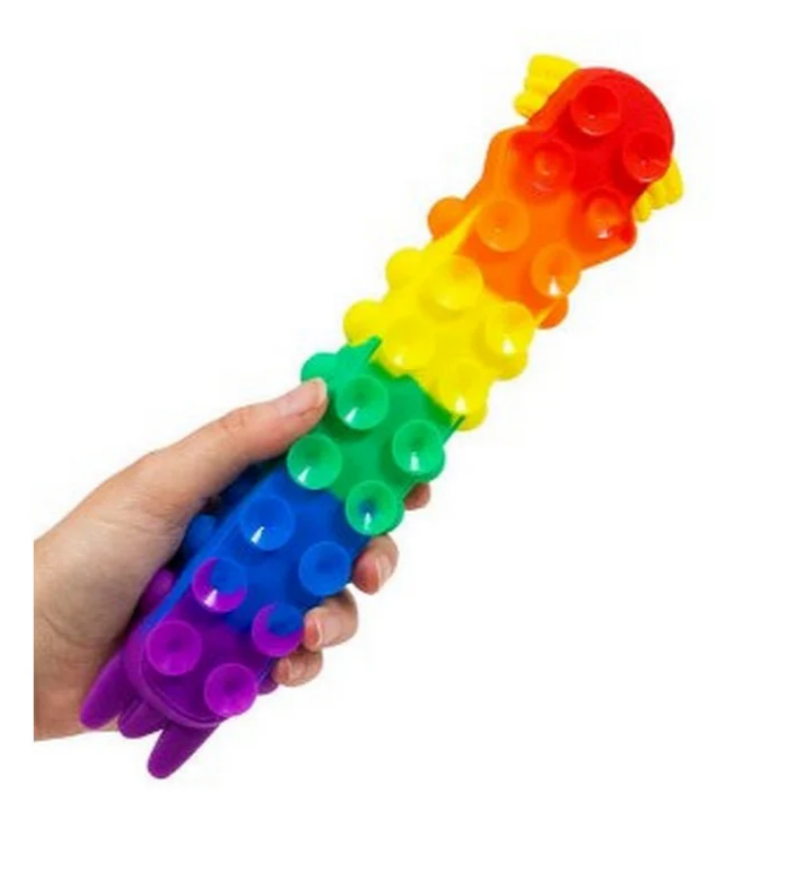 Świecący Popper Przyssawkowy Aksolotl wykonany jest z miękkiego silikonu, co sprawia, że jest zarówno bezpieczny, jak i wygodny w trzymaniu oraz zabawie dla małych rączek.