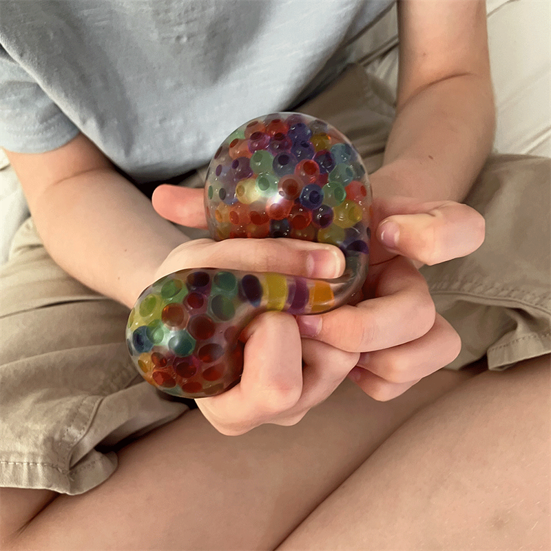 Antystresowa, sensoryczna piłeczka z hydrozolowymi kuleczkami wewnątrz do ściskania, rozciągania, podrzucania i zgniatania, która pod wpływem nacisku zmienia kształt. Poczuj jak hydrożelowe kulki przelewają sie wewnątrz, obserwuj, jak piłeczka powraca do pierwotnego kształtu.
