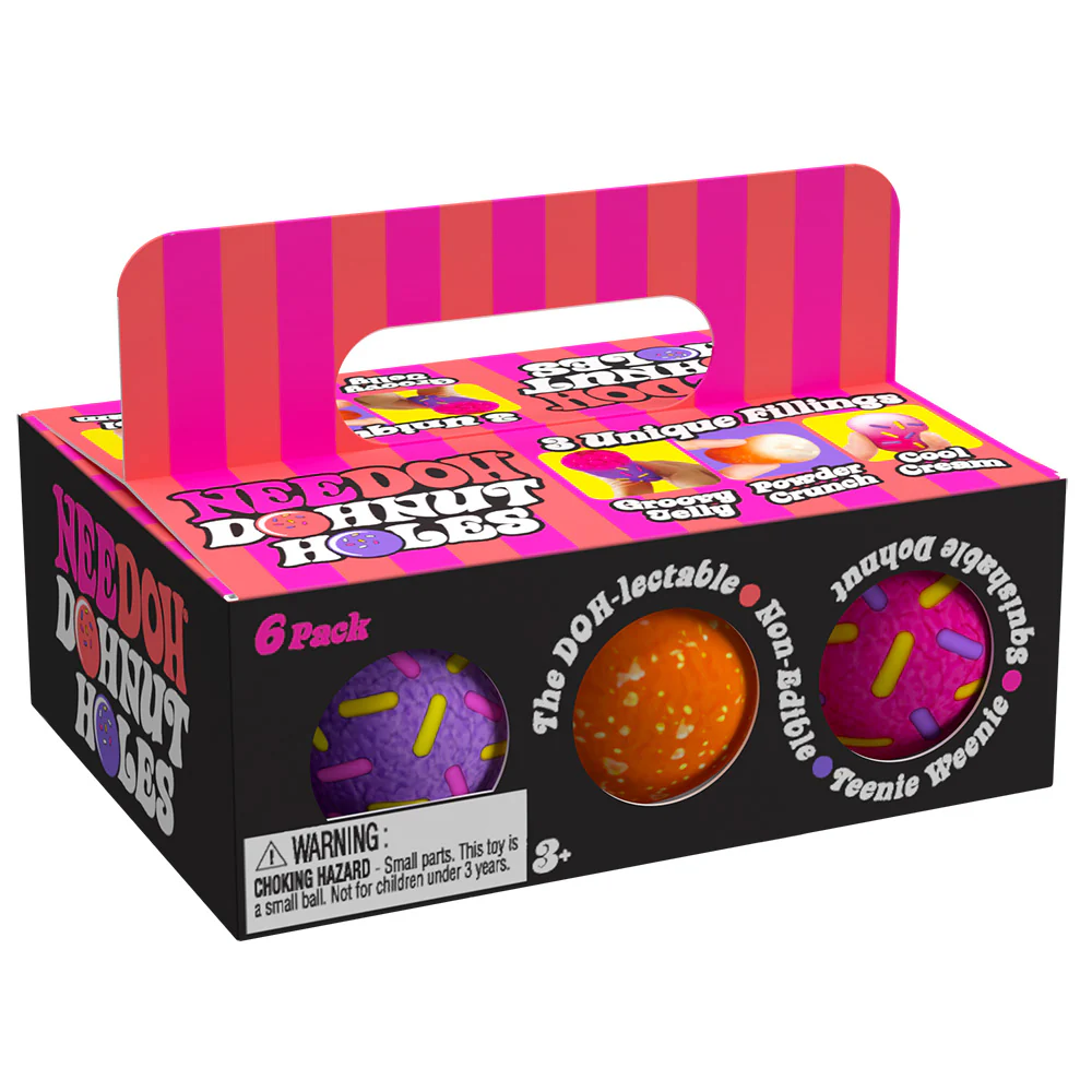 Zapraszamy do uroczej krainy NeeDoh Dohnut Holes, gdzie najmłodsi mogą cieszyć się zabawą i ulgą w stresie dzięki tym elastycznym zabawkom! Antystresowe, sensoryczne piłeczki zestaw 6 sztuk w kartoniku na wynos, do ściskania, rozciągania, głaskania, podrzucania i zgniatania, aby dobrze bawić się, wyciszyć, a przede wszystkim odstresować. Ukoją Twoją duszę i sprawi, że poczujesz się dużo lepiej. Dla dzieci, nastolatków i dorosłych. Dotykanie i zgniatanie w dłoni przyjemnych piłeczek Schylling wyzwala endorfiny, który są źródłem szczucia i zrelaksują Twój umysł.