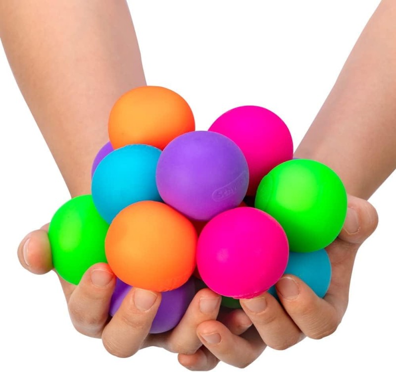 Antystresowe, sensoryczne piłeczki zestaw 18 kolorowych kulek w pudełku, do ściskania, rozciągania, głaskania, podrzucania i zgniatania, aby dobrze bawić się, wyciszyć, a przede wszystkim odstresować. Ukoją Twoją duszę i sprawi, że poczujesz się dużo lepiej. Dla dzieci, nastolatków i dorosłych. Dotykanie i zgniatanie w dłoni przyjemnych piłeczek Schylling wyzwala endorfiny, który są źródłem szczucia i zrelaksują Twój umysł.
