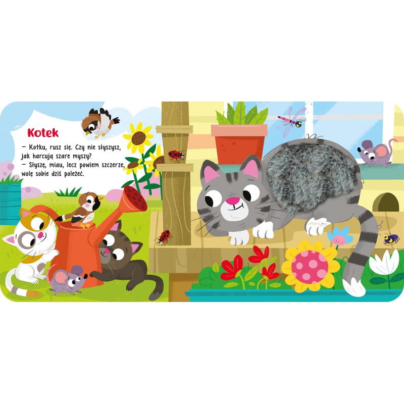 - Format: 17,5 x 17,5 cm; karton, futerka i pluszowe wstawki do dotykania, ilustracje barwne