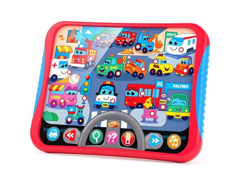 Edukacyjny tablet w przystępny sposób zapozna maluchy z zasadami ruchu drogowego i opowie im o różnych pojazdach, które spotkać można na drodze. W trybie Gra na najmłodszych czeka wycieczka po mieście, podczas, której ich zadaniem będzie naciskać odpowiednie przyciski na zabawce. W trybie quiz, tablet wypowiada rymowane zagadki, a odpowiedź na nie także kryje się wśród obrazków widocznych na tablecie. Zabawę umilą realistyczne odgłosy i aż 7 wesołych melodii. Tablet został wyposażony w regulację głośności oraz przełącznik On/Off.