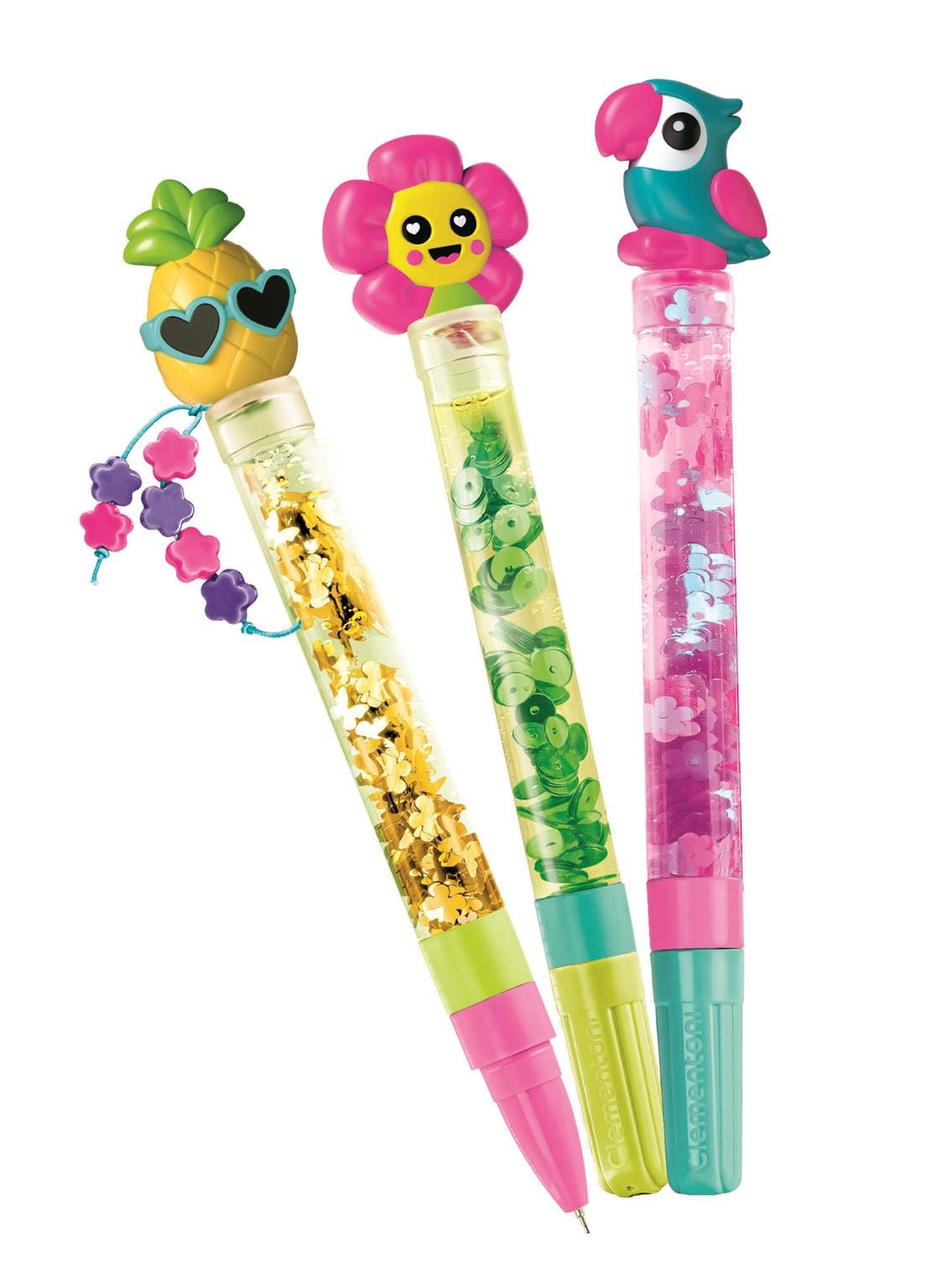 Oryginalny zestaw kreatywny, służący do złożenia 3. długopisów i ich spersonalizowania przy pomocy różnych ozdób w stylu tropikalnym.