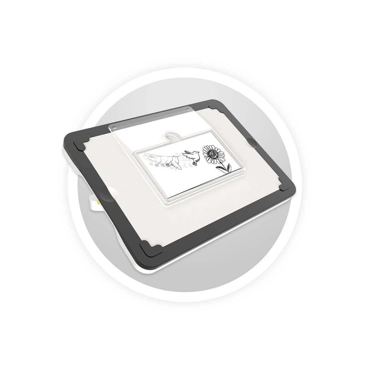- Funkcja odrysowywania: umieść na podkładce obrazek, który chcesz odrysować, a następnie czystą kartkę papieru A5 na wierzchu. Użyj światła LED, aby odrysować obrazek lub po prostu oświetlić swoje dzieło.