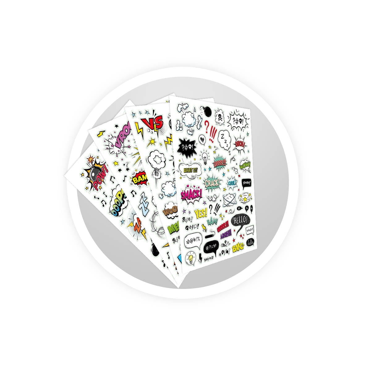 - Funkcja komiksu/mangi: weź arkusz, użyj szablonów do stworzenia pustych stron komiksu, a następnie narysuj obrazki, dodaj naklejki i napisz swoje historie.